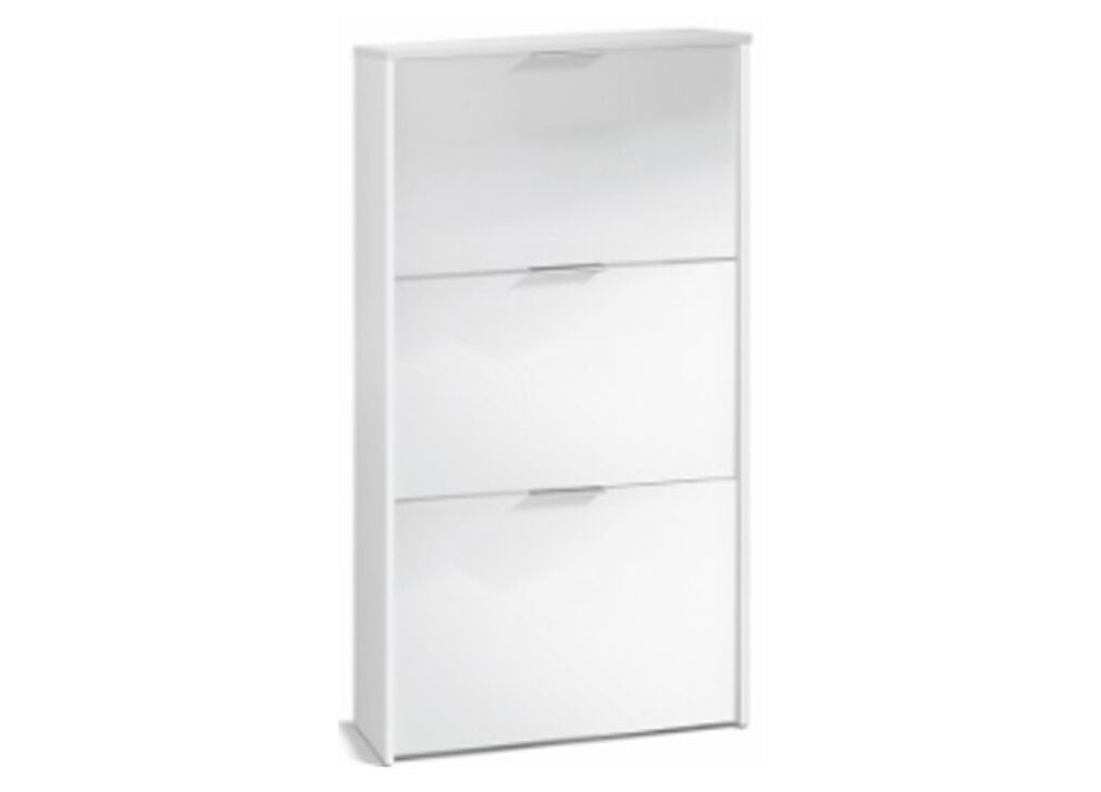 Zapatero De 3 Puertas Abatibles Con Capacidad De 18 Pares De Zapatos Aproximadamente. Sistema Abatible Abs De Dos Bandejas. Tacos Abs Quitarruidos Y Antirayas Para La Parte Inferior Del Mueble. Tiradores De Aluminio. Sistema De Cierre Abs Para Las Puertas. Se Incluye Los Dispositivos De Fijación Del Mueble A La Pared.