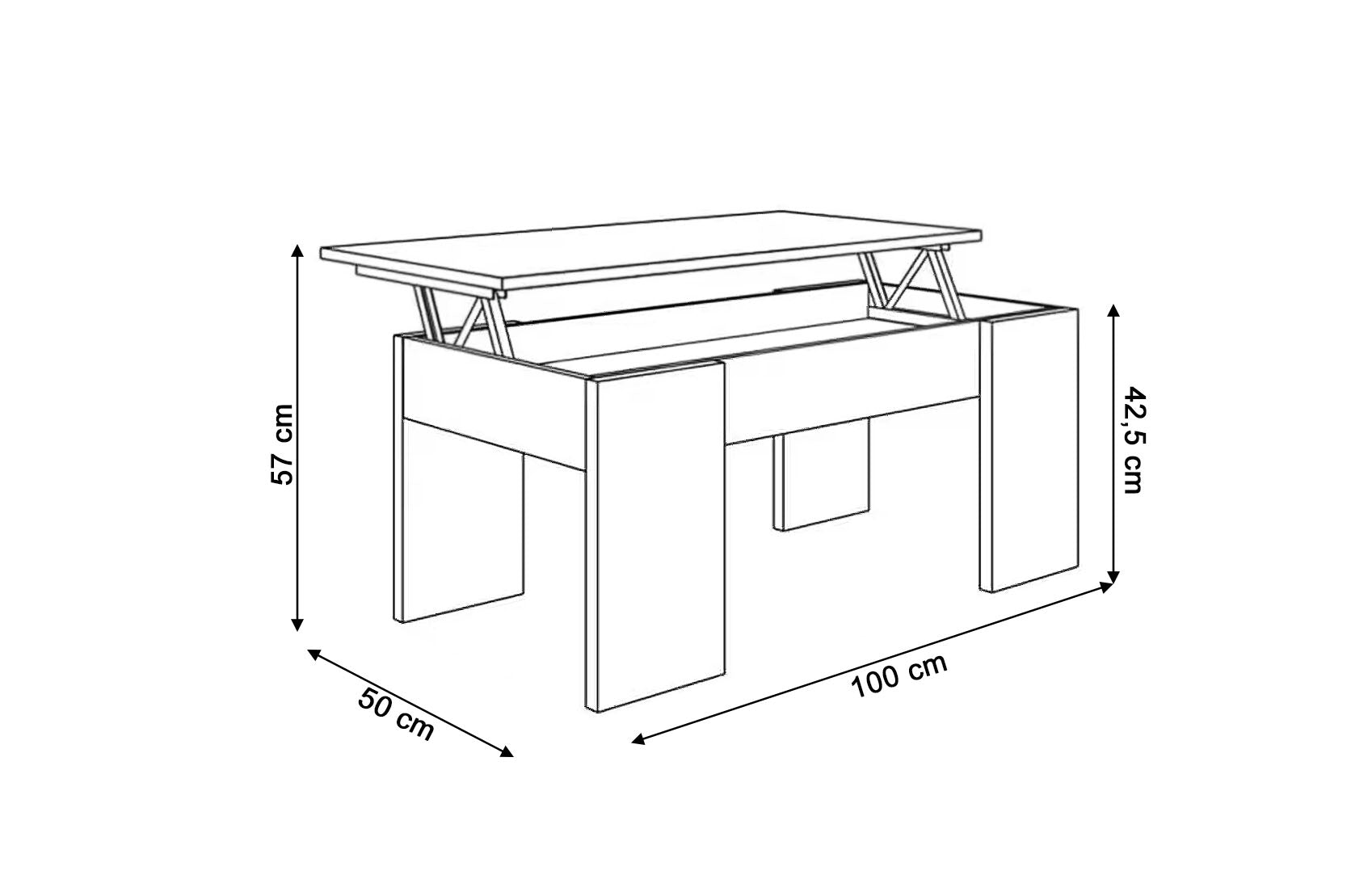 La Mesa de Centro Elevable es moderna y funcional, puede ser utilizada con diferentes funciones, como: mesa de centro, mesa de cafe o mesa de juegos. Viene con una tapa que se puede elevar. Con espacio de almacenamiento que queda oculto al cerrar la tapa.