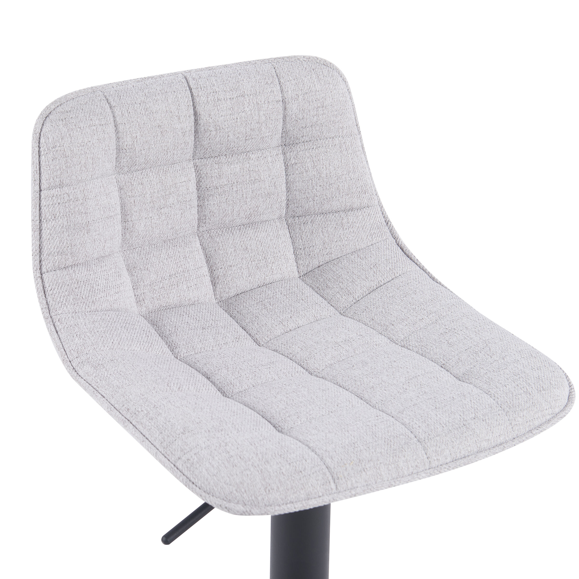 Taburete ajustable ADAM. Bonito taburete giratorio ajustable en altura de diseño moderno y contemporáneo. Su asiento y respaldo son muy cómodos gracias a que están acolchados con espuma y tapizados con tela. Además, al ser giratorio, ajustable en altura y con reposapiés nos permite elegir la altura y postura perfecta para nosotros. Con su resistente estructura metálica en color negro, la cual proporciona estabilidad. El taburete ajustable ADAM es perfecto para mesas altas o barras.