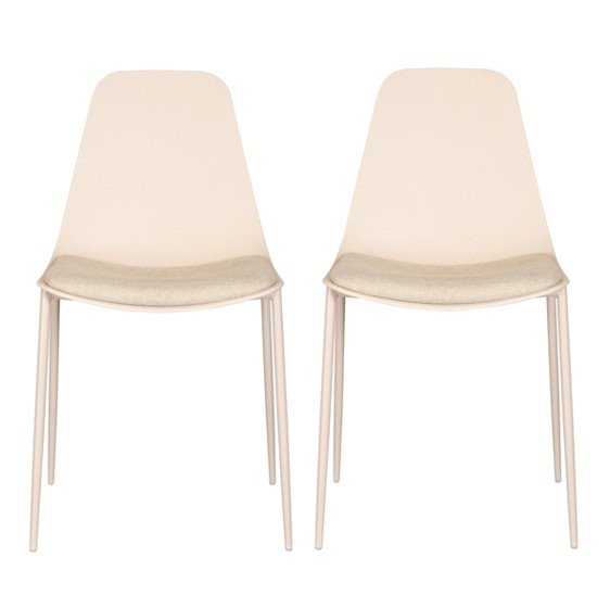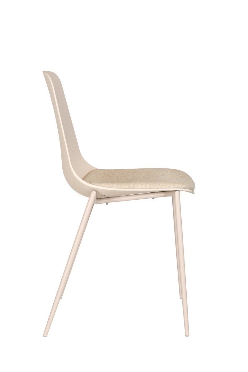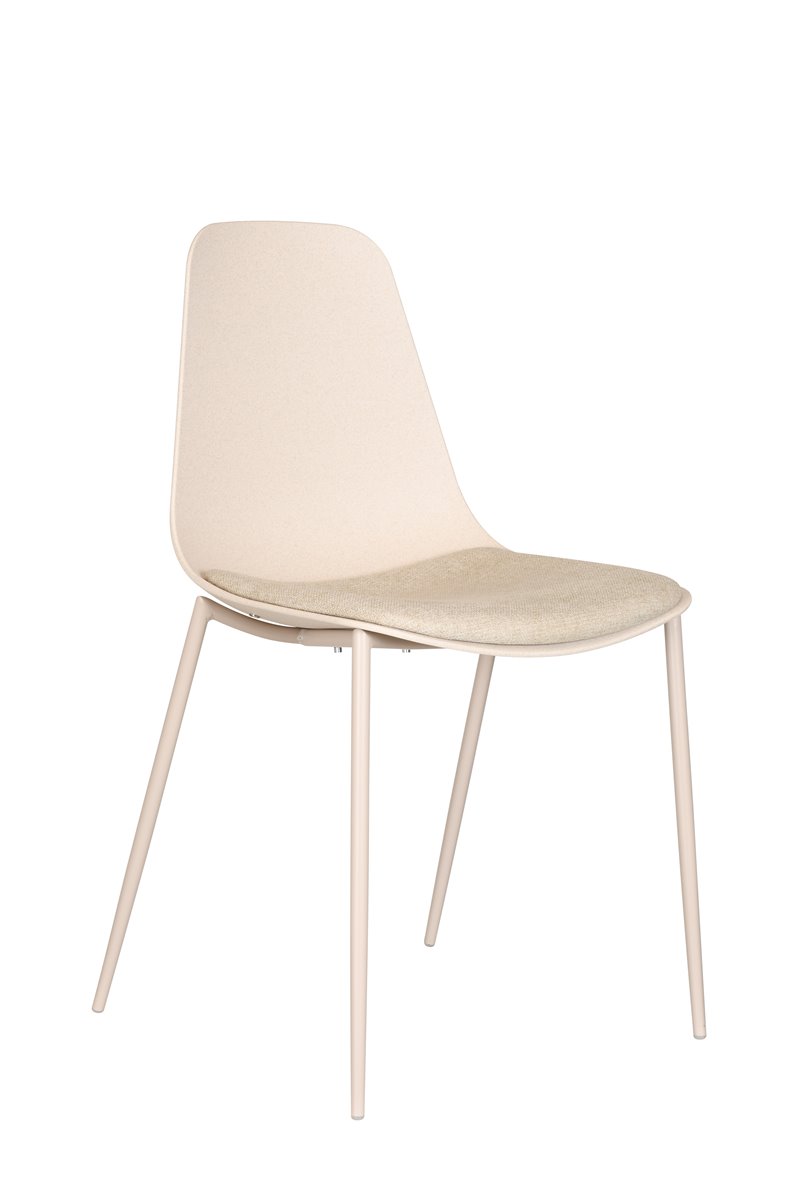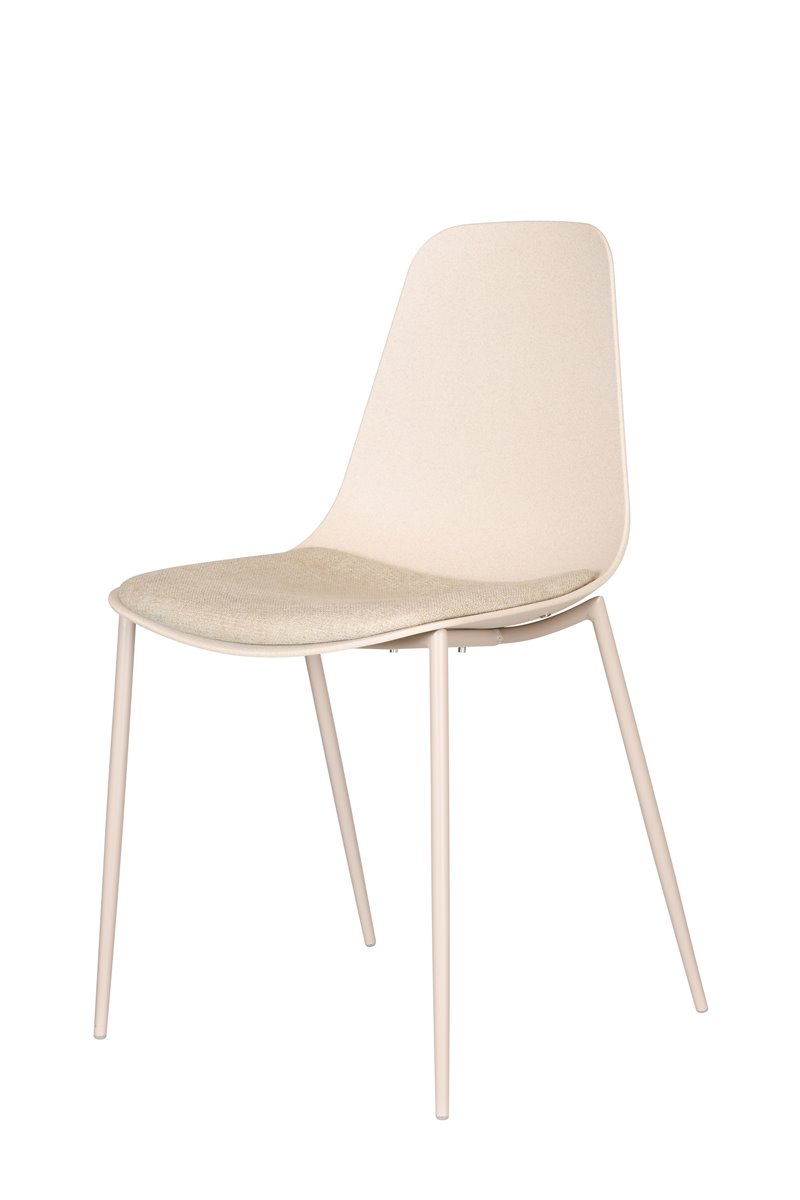 Silla de cocina CUSHION. Cómoda silla fija, fabricada en polipropileno (PP) color beige, asiento con cojín tapizado en tela color beige y patas de metal. Esta silla es perfecta para el día a día, aportando confort y un diseño moderno a tu hogar. Su mantenimiento es tan sencillo que aguanta el trote diario con poco mantenimiento, no lo dudes y elige entre la gama de colores disponibles de la silla CUSHION.