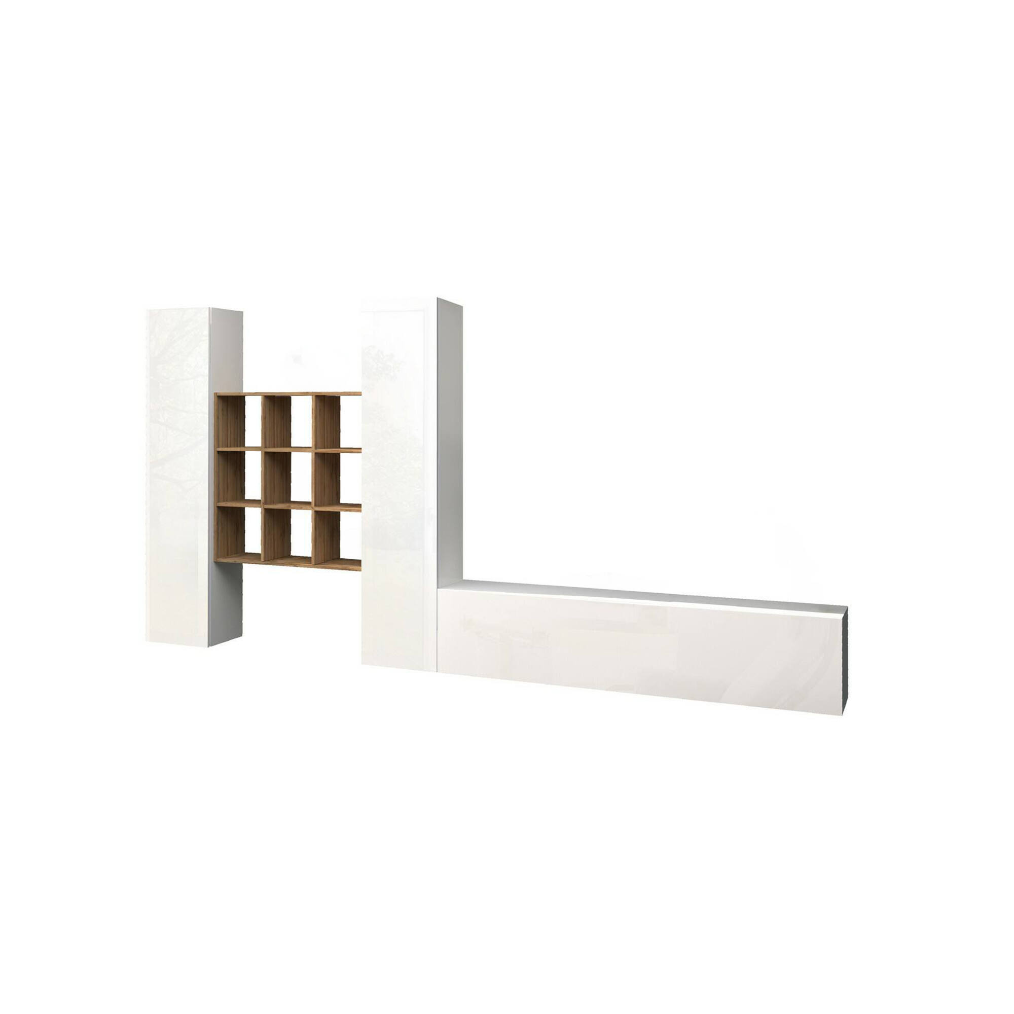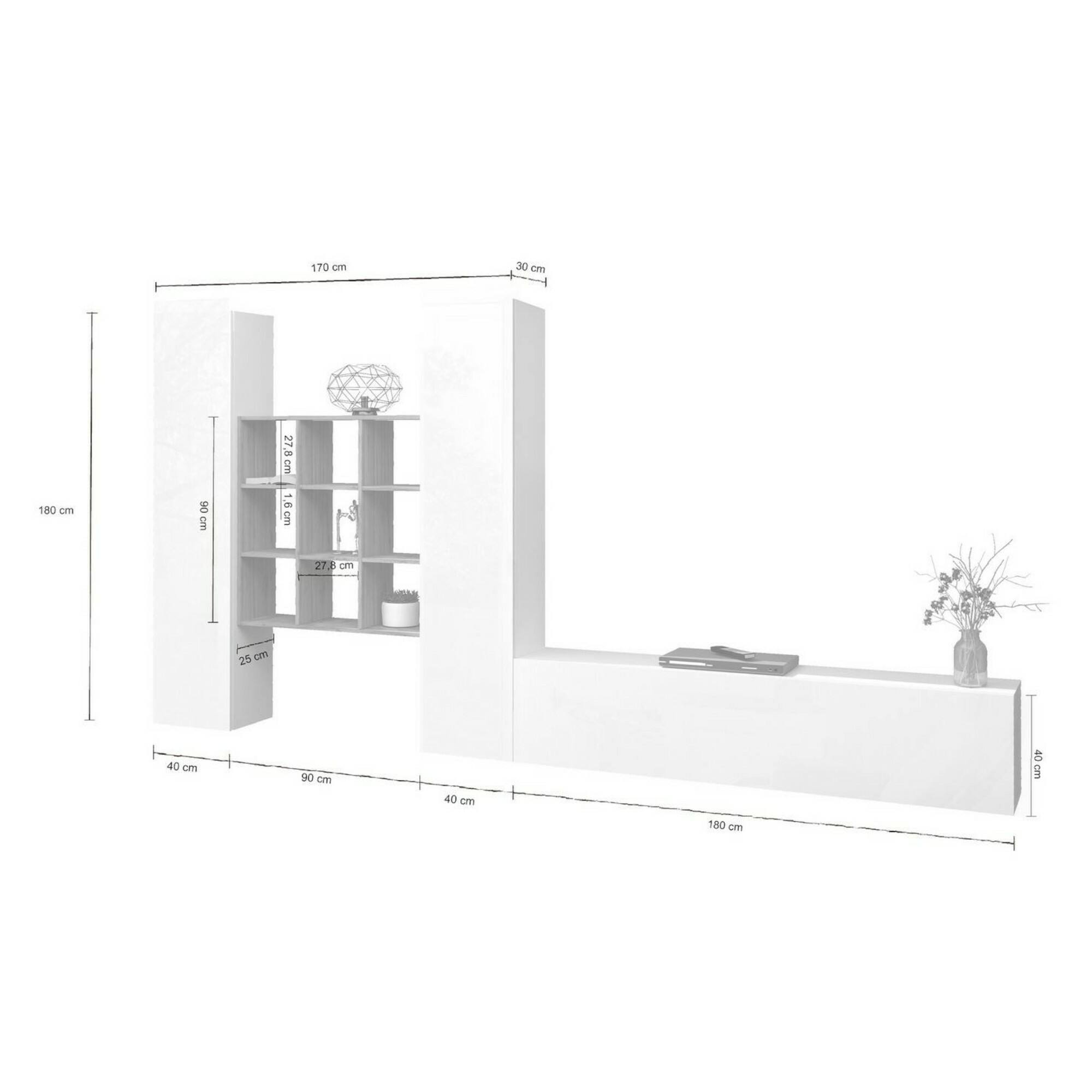 Móvel de parede Dcarbon, conjunto de sala de TV com 3 portas, móveis de sala multiuso, 100% fabricado na Itália, 270x30h180 cm, branco brilhante e bordo.