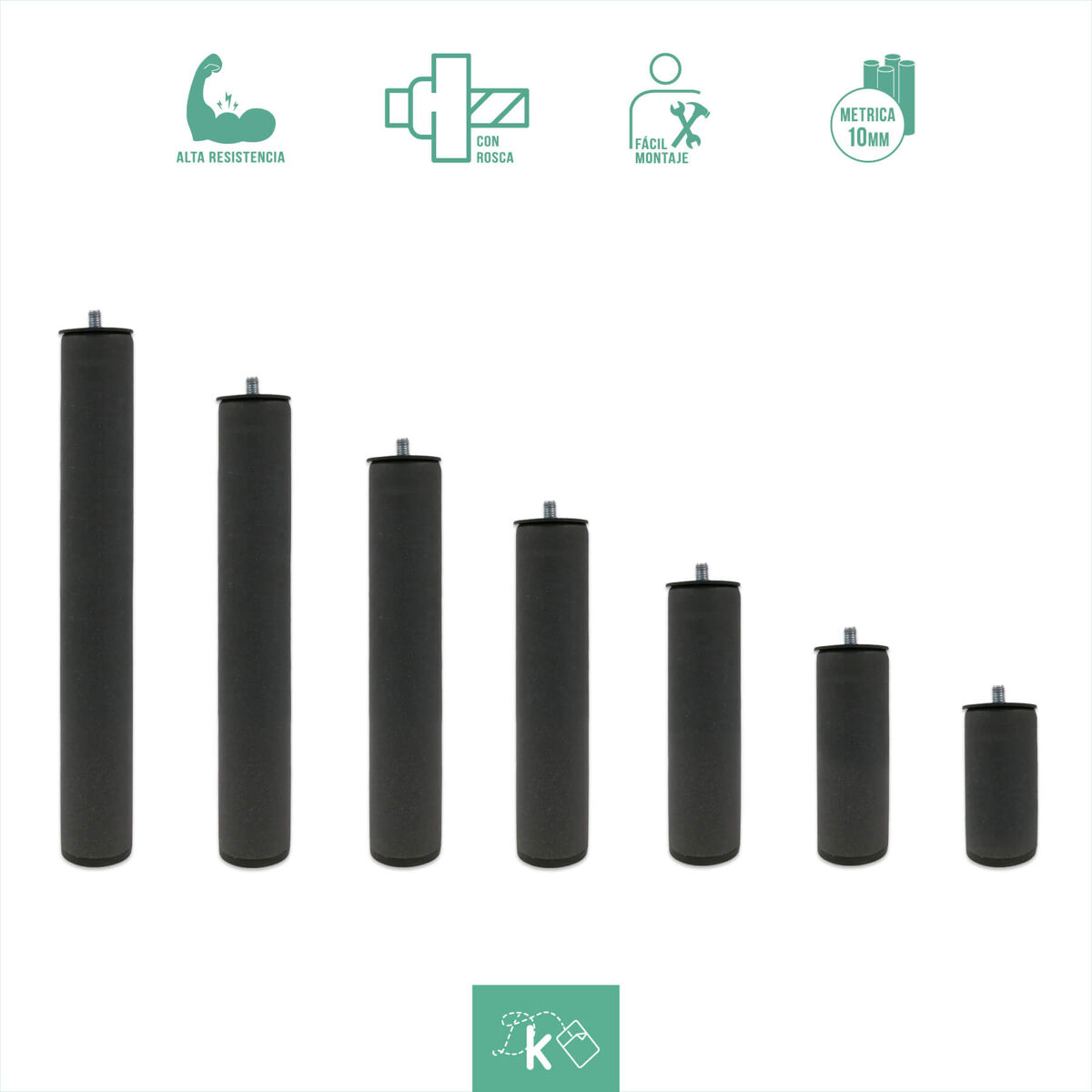 PATAS PARA SOMIER. PACK de primeras calidades de patas enroscables. Puedes elegir tanto las unidades como el tamaño del pack. Nuestras patas metálicas redondas tienen una rosca métrica de 10 (1 cm); su diámetro es de 5cm y la altura del tornillo oscila entre los 1.2cm y los 2cm. El tornillo es estándar, lo que las hacen válidas para la gran mayoría de bases o somieres. Material de gran calidad fabricado en España bajo la normativa europea y fomentando el empleo digno. Color antracita e incluyen una pletina de plástico por cada unidad, para que no esté en contacto directo con el somier o la base y pueda dañarlo. Fácil montaje, únicamente debe de colocar la pletina de plástico en el tornillo y enroscar en el agujero del somier o la base. IMPORTANTE. Las entregas se realizan a pie de calle. Una vez abierto, su devolución puede conllevar gastos adicionales. Si su paquete llega dañado, indíquelo en el albarán del transportista y no acepte la entrega. El coste de envío a Baleares no está incluido en el producto, tenga en cuenta que puede tener que realizar pagos adicionales. No realizamos envíos a Canarias, Ceuta y Melilla.