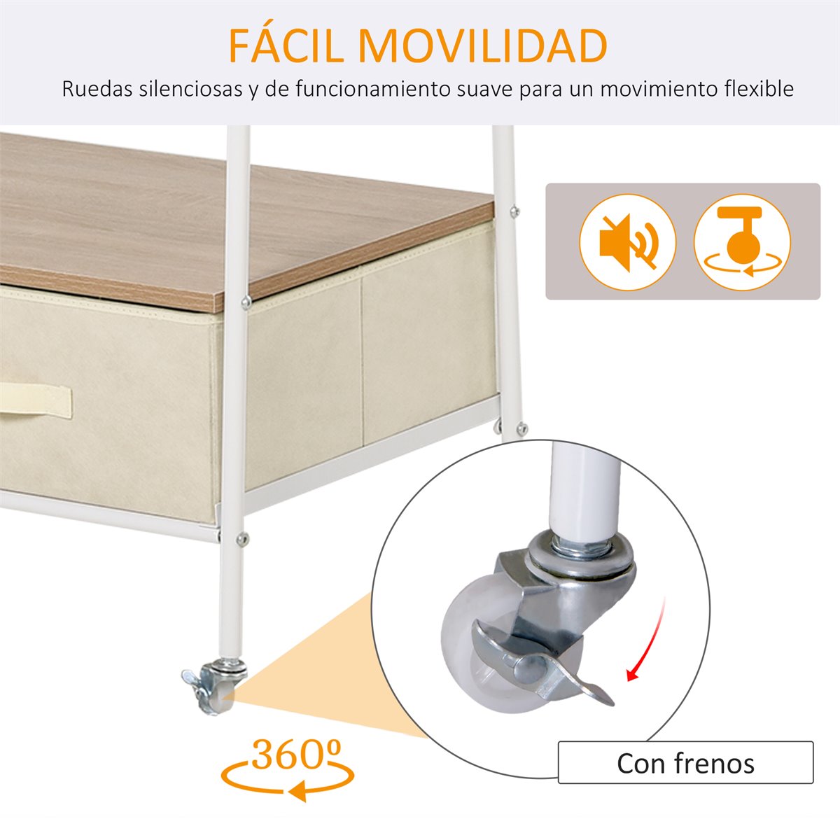 - Fácil movimiento con 4 ruedas, 2 con frenos para mantenerlo en su lugar