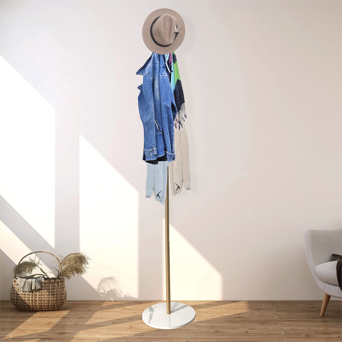 Añade estilo y funcionalidad a tu hogar con nuestro perchero de pie estilo nórdico. Ordena tus prendas con elegancia y disfruta de un espacio organizado sin renunciar al buen gusto.