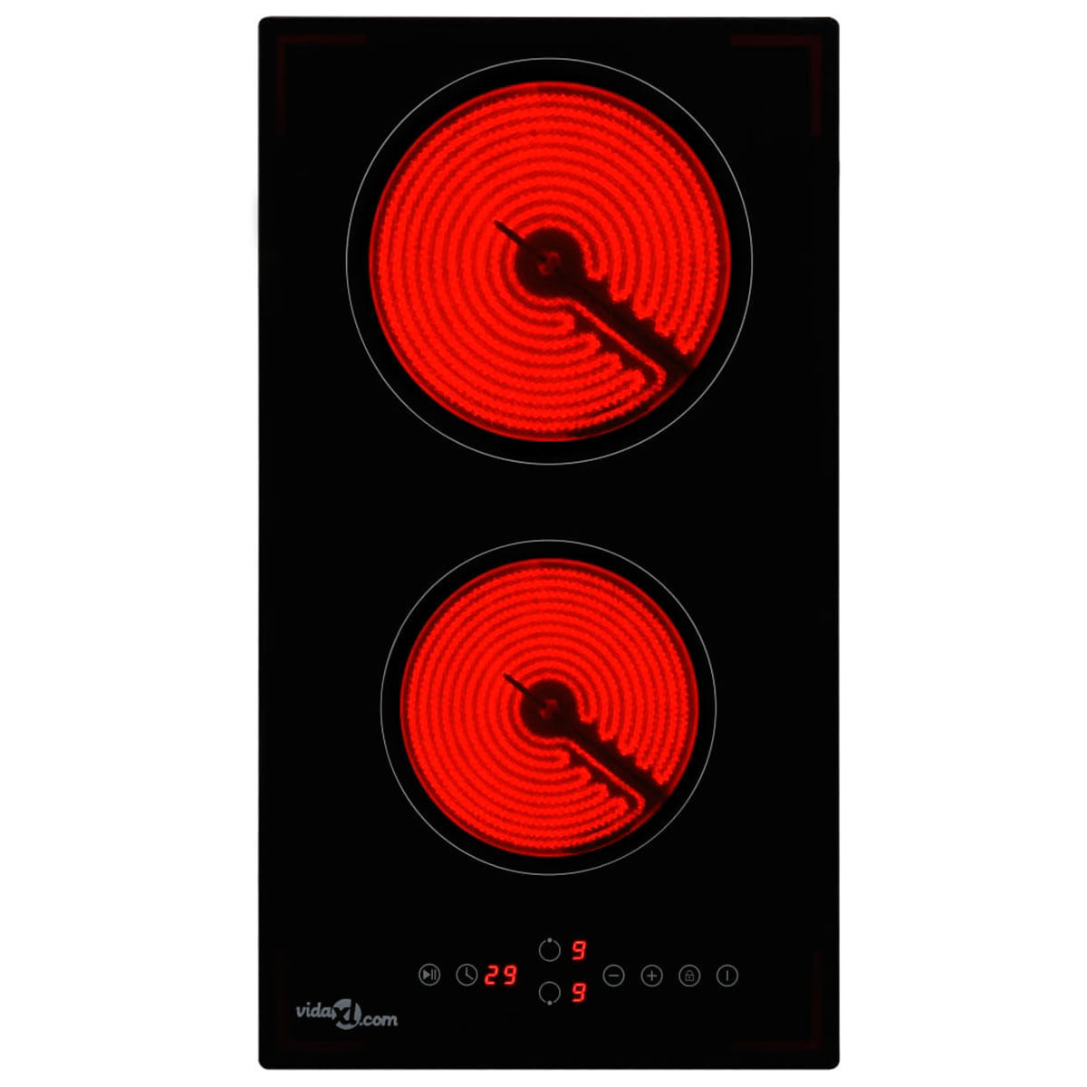 Esta placa vitrocerámica compacta es perfecta para cocinas pequeñas. Está hecha con vidrio y cerámica de primera calidad, muy resistente al calor. Cuenta con 2 quemadores, el más grande con 1800W de potencia y el pequeño con 1200W, en total 3000W. También dispone de 9 niveles de cocción y control táctil del sensor. Podrás usar su temporizador individual de hasta 99 minutos, y si necesitas pararlo, cuenta con función pausa. El sensor integrado controla la temperatura, por lo que la placa se apagará automáticamente si se calienta demasiado. Además, si se sobrecalienta, su indicador de calor residual te avisará cuando la hornilla permanezca caliente durante mucho tiempo, liberando calor residual y emitiendo una señal acústica. También dispone de bloqueo infantil para mayor seguridad. ¡Aprovecha ahora para conseguir tu nueva placa vitrocerámica ahora a un precio de lo más bestial!