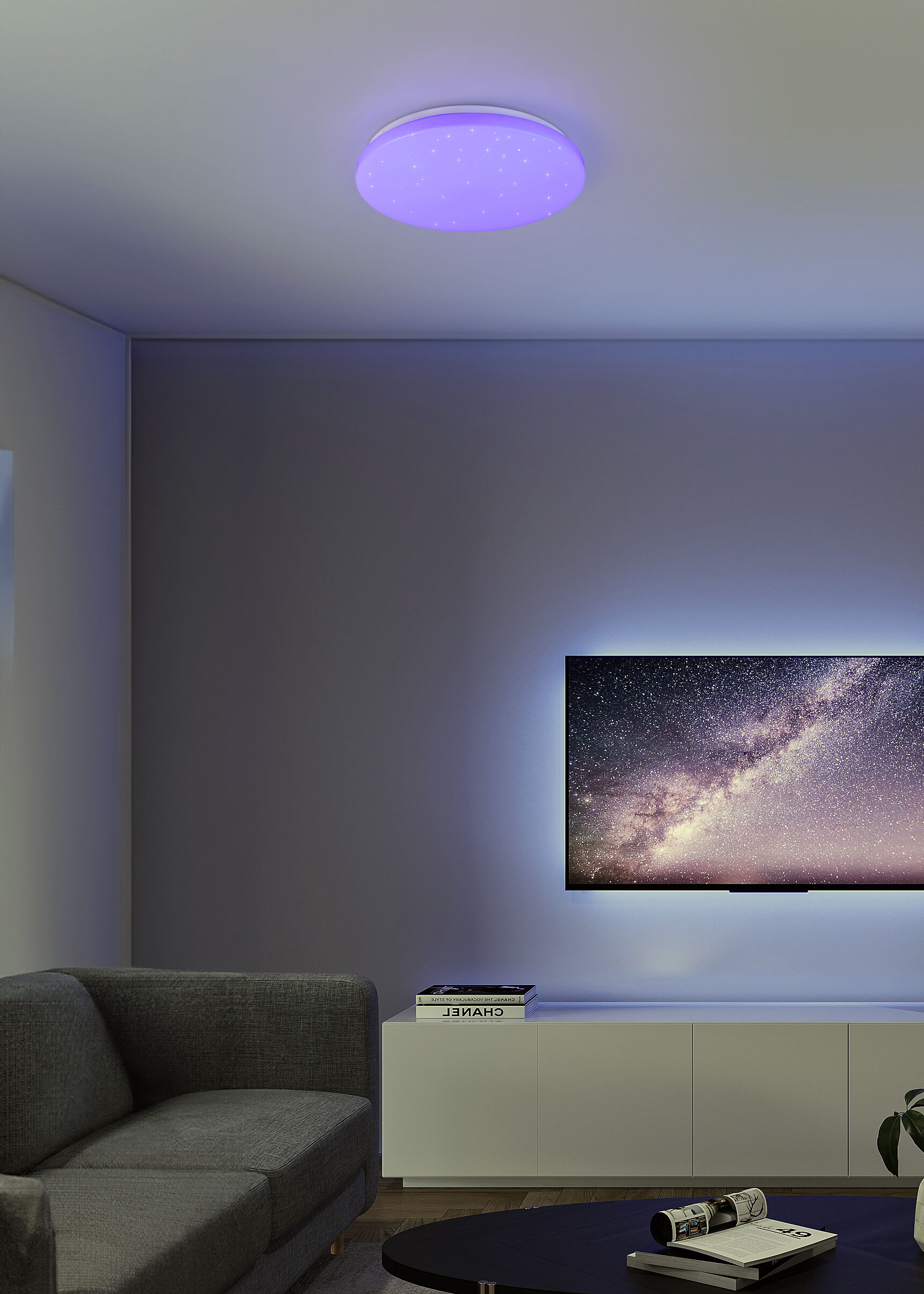 Plafón Kira, montaje de techo regulador integrado, IP20, color de luz infinitamente variable, función de memoria luz de la noche, no apto para regulador externo, mando a distancia.