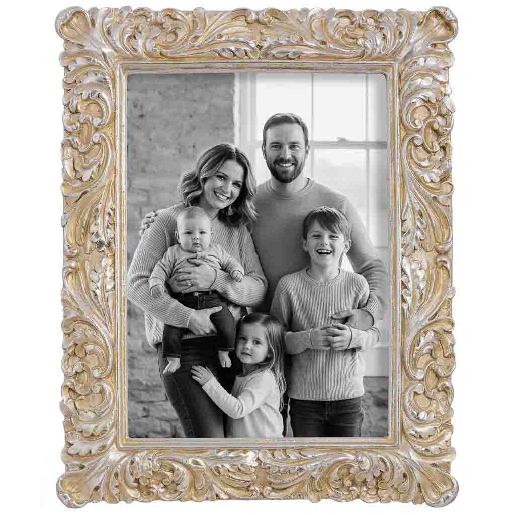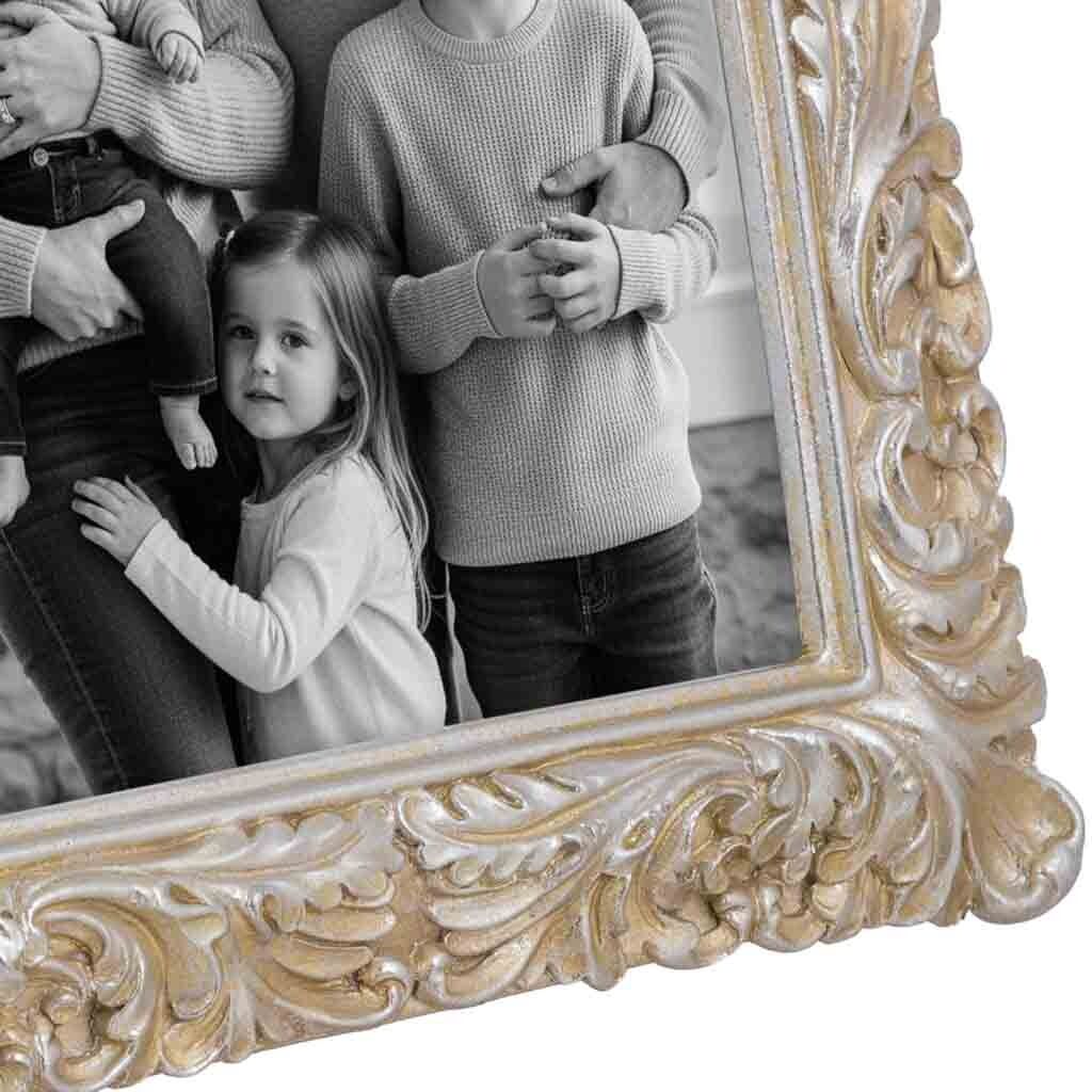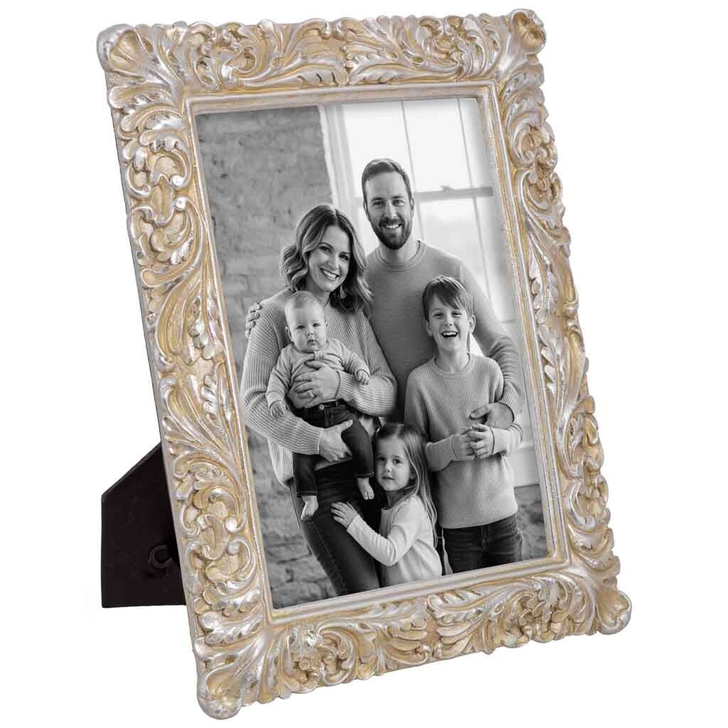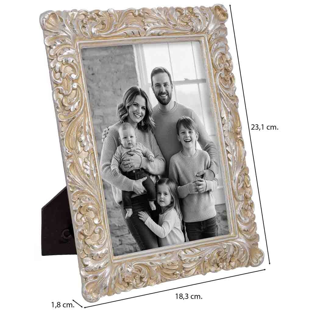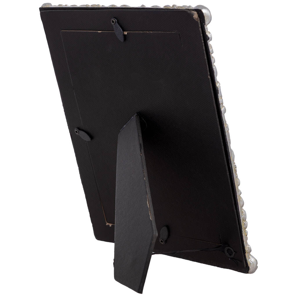 Este porta fotos de metal plateado, de líneas limpias y acabado brillante, ofrece un marco elegante para fotografías de 13x18 cm.
