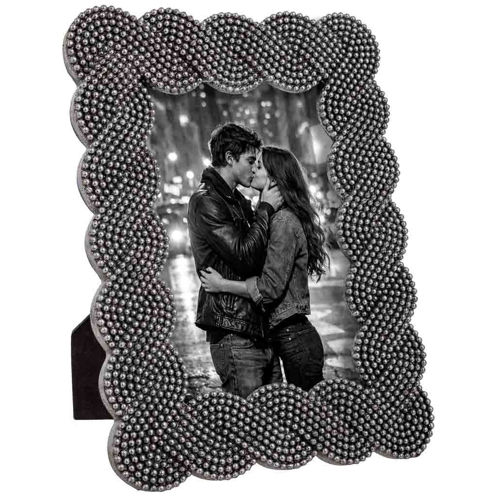 Este porta fotos de metal negro combina un diseño moderno y sobrio con un acabado satinado que realza las fotografías con elegancia. Con 15,2 cm de ancho, 1,7 cm de fondo y 20,4 cm de alto, es ideal para imágenes de 10x15 cm.