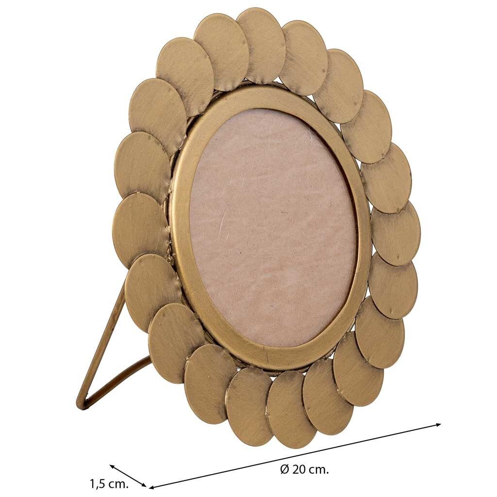 Marco para fotos de metal con estructura resistente y diseño decorativo. Sus dimensiones de 20x20 cm y grosor de 1.5 cm lo hacen ideal para cualquier tipo de ambiente.