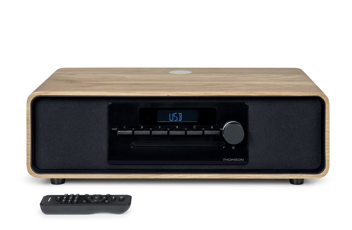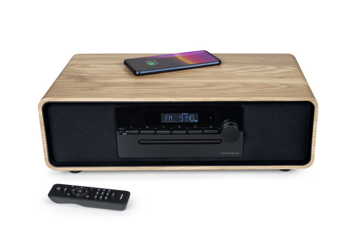 Con sus elegantes curvas y su acabado en roble claro, este sistema estéreo te permite escuchar tu música a través de Bluetooth, USB, reproductor de MP3 AUX-IN, CD o radio. También puedes conectar un tocadiscos de vinilo RCA para disfrutar del sonido especial de los discos de vinilo. Además, puedes recargar tu smartphone mediante inducción o USB. Con 60 W de potencia musical, este conjunto te ofrece un sinfín de posibilidades de audición.