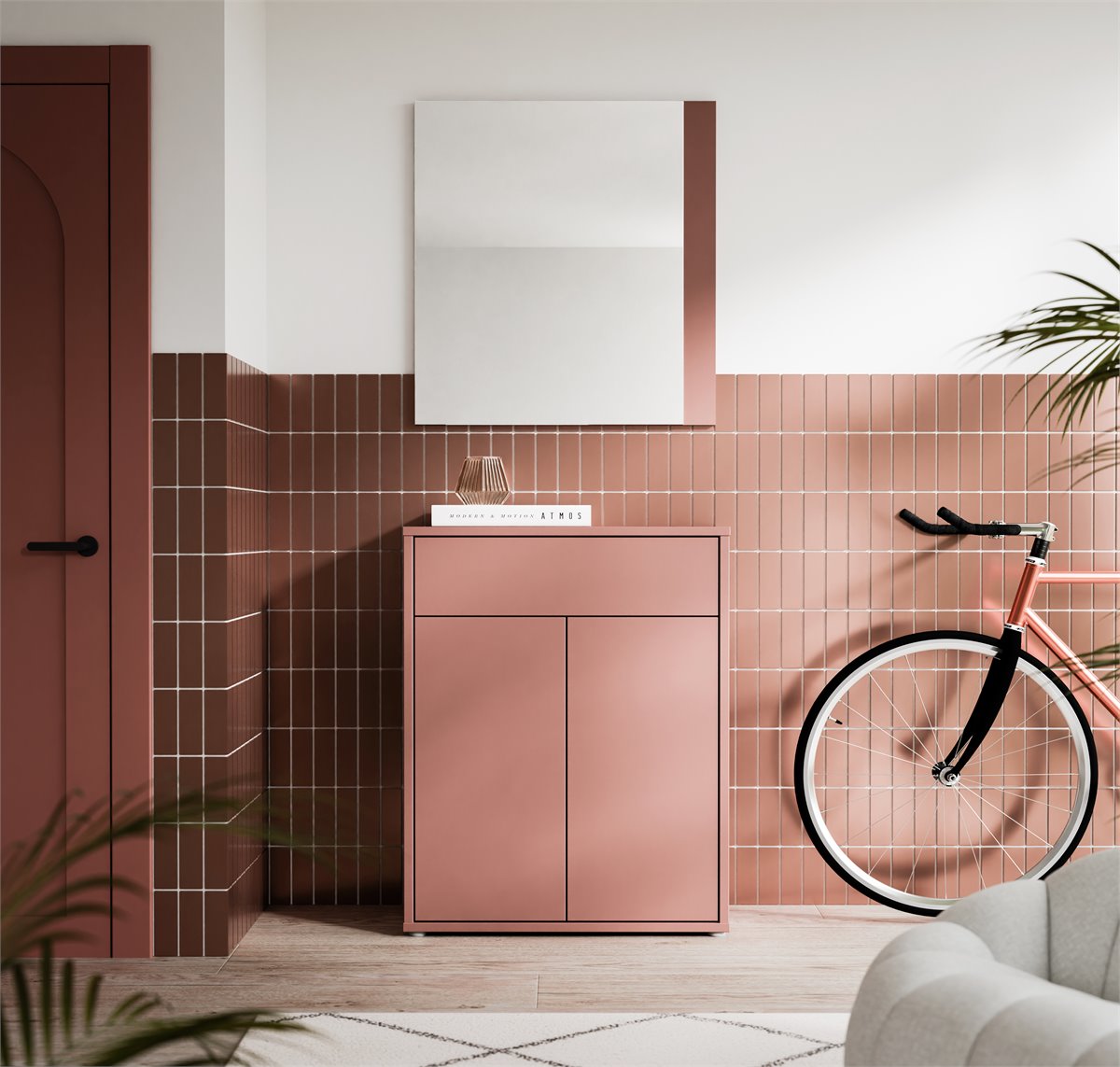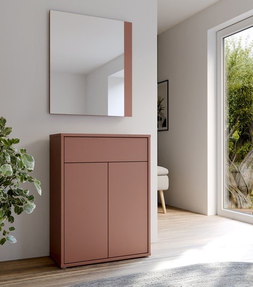 El mueble recibidor Alice es una pieza ideal para organizar tu entrada con estilo y funcionalidad. Con un diseño moderno en color terracota, este mueble cuenta con un práctico cajón y dos puertas que ofrecen una gran capacidad de almacenamiento, permitiéndote mantener tus objetos esenciales a la mano de forma ordenada. Además, su espejo no solo amplía visualmente el espacio, sino que añade un toque de elegancia. Fabricado con estructura de panel de partículas, garantiza durabilidad y resistencia. Sus medidas de 74,5 cm de ancho, 200 cm de alto y 34,9 cm de fondo lo convierten en la opción perfecta para espacios pequeños y medianos que requieren optimización sin sacrificar diseño.