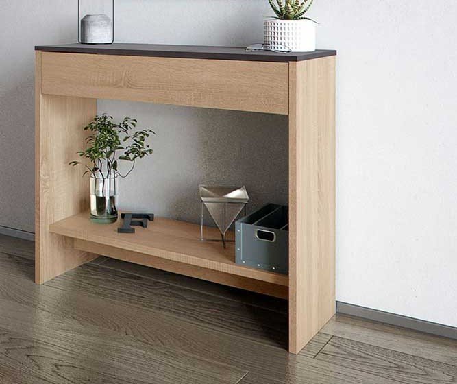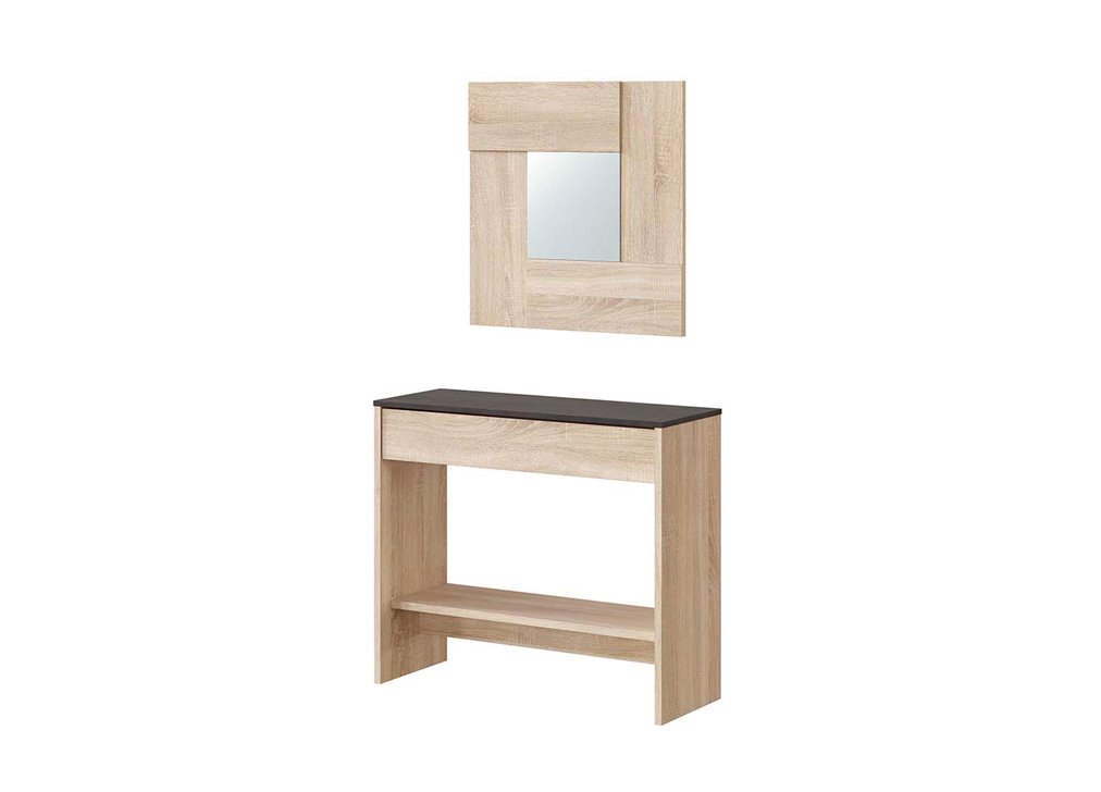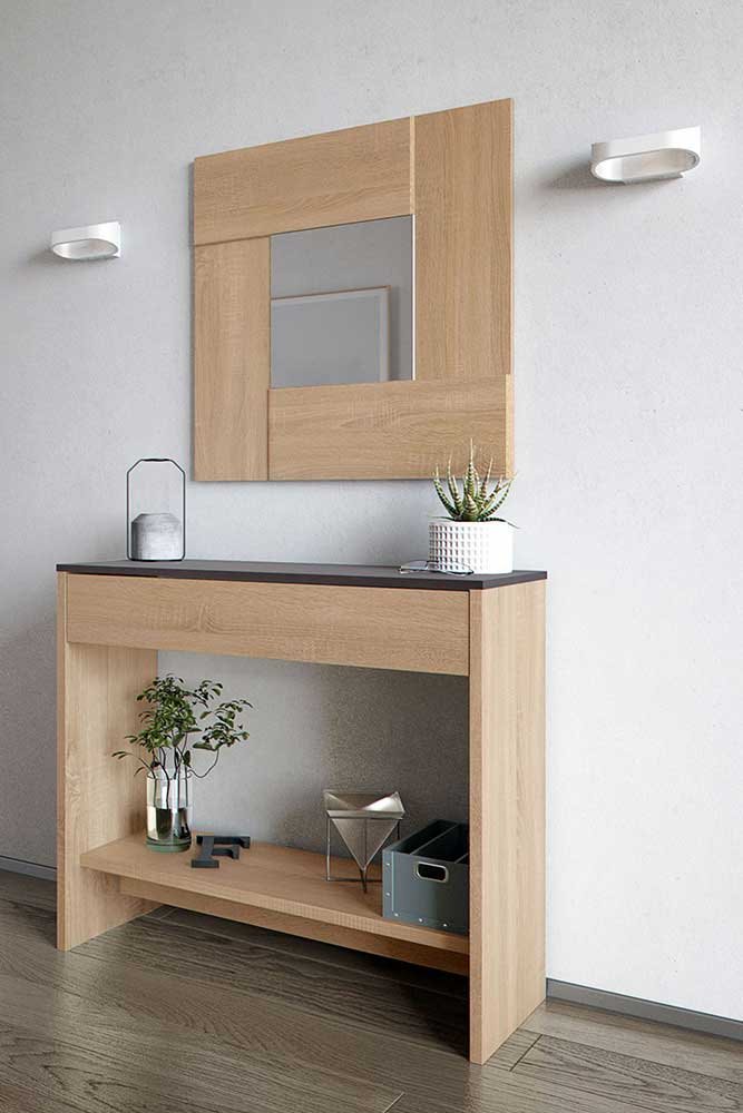 El recibidor es lo primero que se ve de tu casa, por eso es importante que tanto tú como todos los invitados se lleven una buena impresión cuando entren a tu hogar.Este recibidor OXY contiene un espejo y un mueble con un cajón guiado por correderas metálicas. Además, todos los materiales son de gran calidad: Los tacos son ABS (termoplásticos de alta resistencia) para evitar ruidos y anti rayas en la parte inferior del mueble.Por último, cabe destacar que este producto incluye los dispositivos de fijación del espejo a la pared.