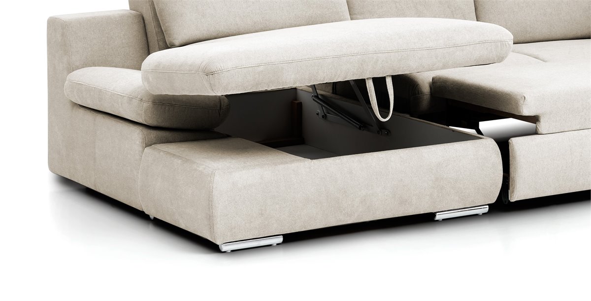 Encuentra tu rinconera con cama modelo ISONA color beige en nuestra tienda Conforama. Te encantará su diseño, forma, elegancia y sobretodo su comodidad .Chaise Longue convertible en cama de 269 x 121 cm. Revestimiento 100% Polyester, con 2 arcones, 6 cabezales reclinables, brazo regulable. Estructura de madera dura y madera contrachapada.Tipo de suspensión: Muelles Zig-Zag. Densidad de la espuma en asientos: 38 kg/m3 .Patas de metal. ISONA es un diseño de calidad sin precedentes perfecto para cualquier ambiente.
