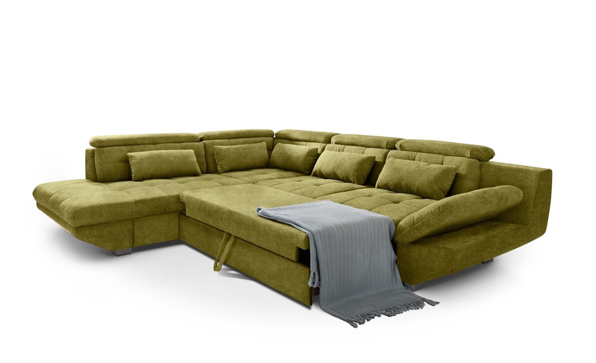 Renueva tu sofá con la rinconera izquierdo convertible en cama ETERNITY. Un sofá con grandes dimensiones .Rinconera convertible en cama de 222 X 138 cm, con cajón y 5 cojines decorativos incluidos. Chaise Longue convertible en cama de 228x 138 con 3 cojines decorativos. Estructura de madera de haya y madera contrachapada. Suspensión: Muelles Zig-Zag. Densidad de la espuma en asientos 38 Kg/m3. Patas de plástico. Rinconera o sofá en U, con esta opción no vas a desaprovechar ni un centímetro de tu salón, porque la forma en ángulo recto de nuestros increíbles sofás rinconera se adapta perfectamente a todas las esquinas y rincones.