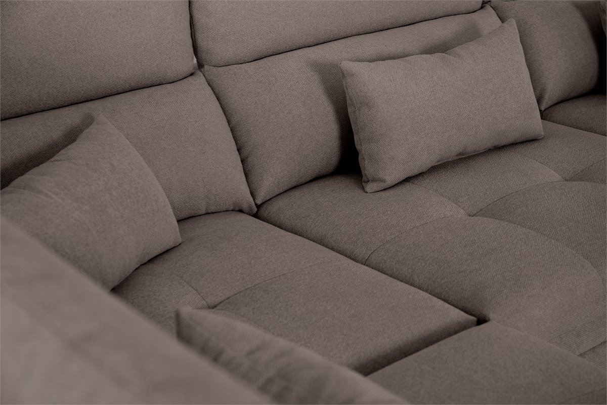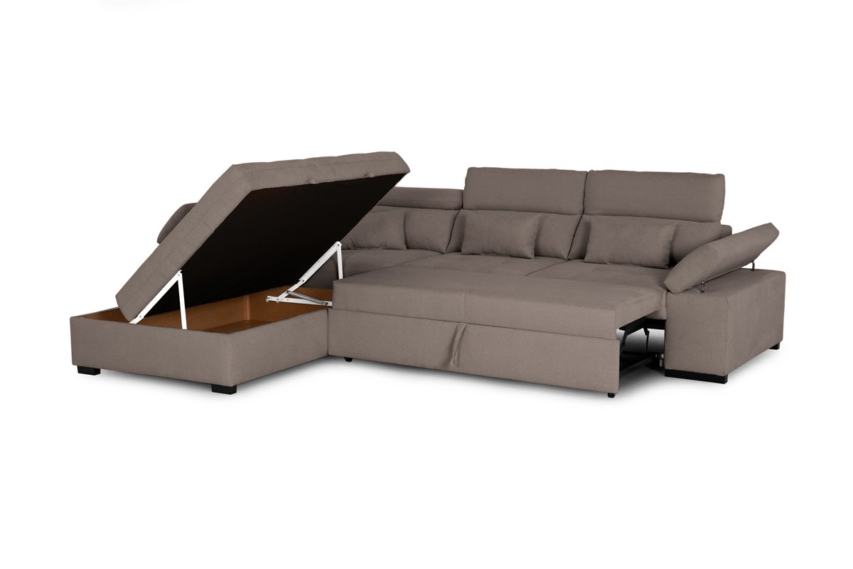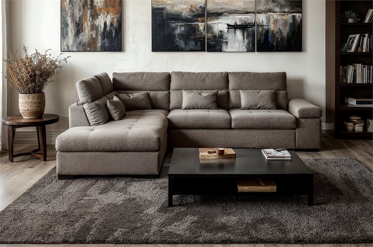 ¡Lleva la comodidad y el estilo a otro nivel con STEWART! Este sofá rinconera reversible con cama en elegante color marrón es la combinación perfecta de funcionalidad y diseño moderno. Con su estructura de madera resistente, tapizado en tela suave y detalles como reposacabezas ajustable, apoyo lumbar y brazo arcón ajustable, STEWART te brinda la máxima comodidad. Además, incluye cojines decorativos para un toque extra de elegancia. ¡No pierdas la oportunidad de transformar tu espacio con STEWART!