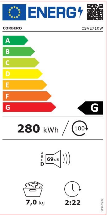Controla tu tiempo. Si decides incorporar la secadora CORBERÓ CSVE710 a tu vida, podrás saber exactamente cuándo tu ropa está lista. Cuando termine tu lavadora, podrás pasar toda tu ropa a la secadora CORBERÓ CSVE710 para que en poco tiempo, aquellas prendas que necesitas estén listas para usar. Con una capacidad de 7kg. de carga podrás dejar perfectamente seca la ropa de toda tu familia. Además, podrás seleccionar entre sus 2 niveles de temperatura y sus 4 programas de secado el que mejor se adapte a tus necesidades. Aparte, la secadora CORBERÓ CSVE710 gracias a su puerta de gran apertura de 190º te facilitará mucho las cosas.