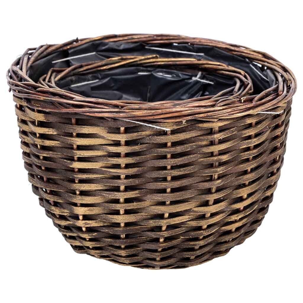 Este conjunto de cestos de mimbre incluye dos piezas de diferentes tamaños y formas. El primero tiene un diámetro de 24 centímetros y una altura de 12 centímetros, mientras que el segundo tiene un diámetro de 18 centímetros y una altura de 13 centímetros.