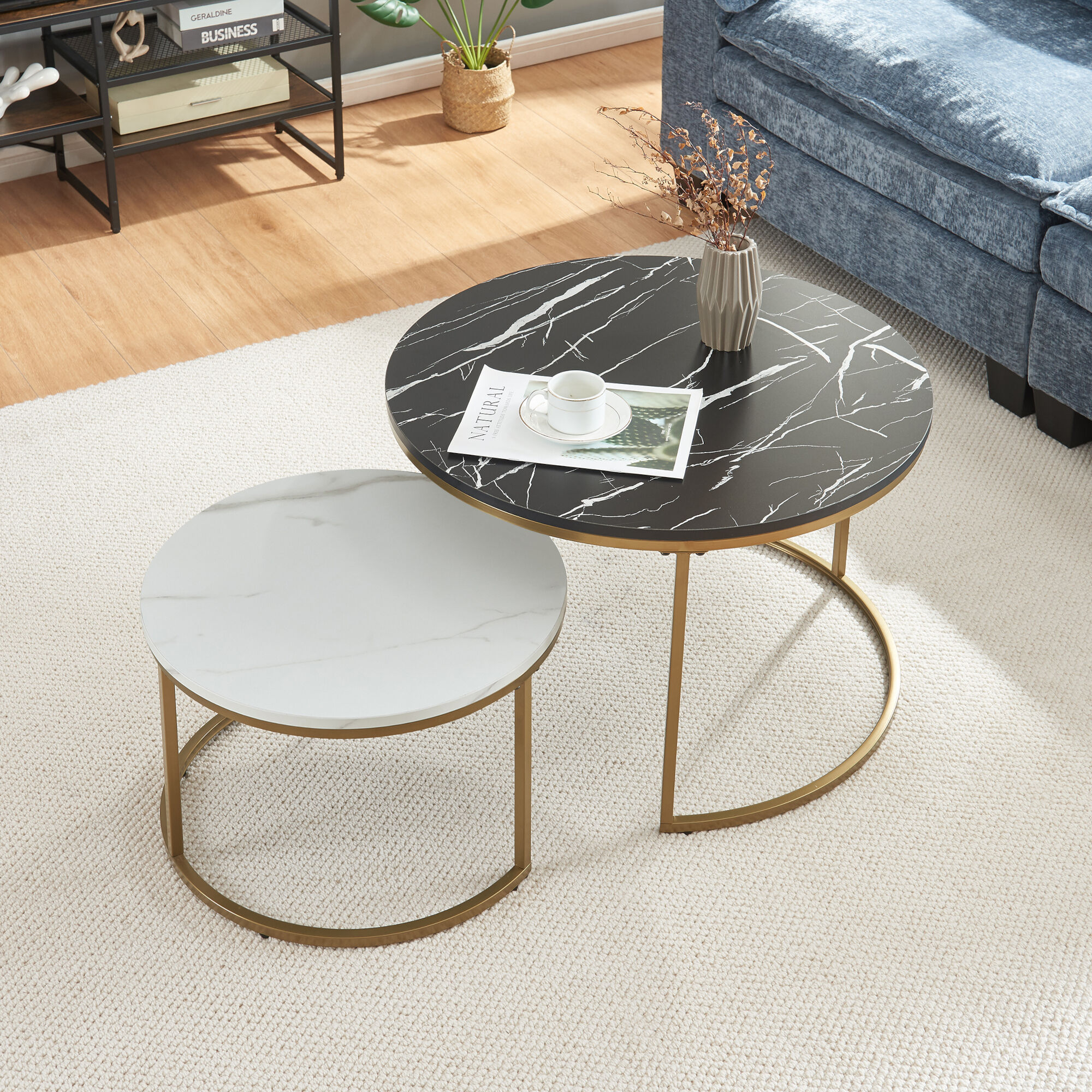 - juego de 2 mesas de centro redondas en diferentes tamaños