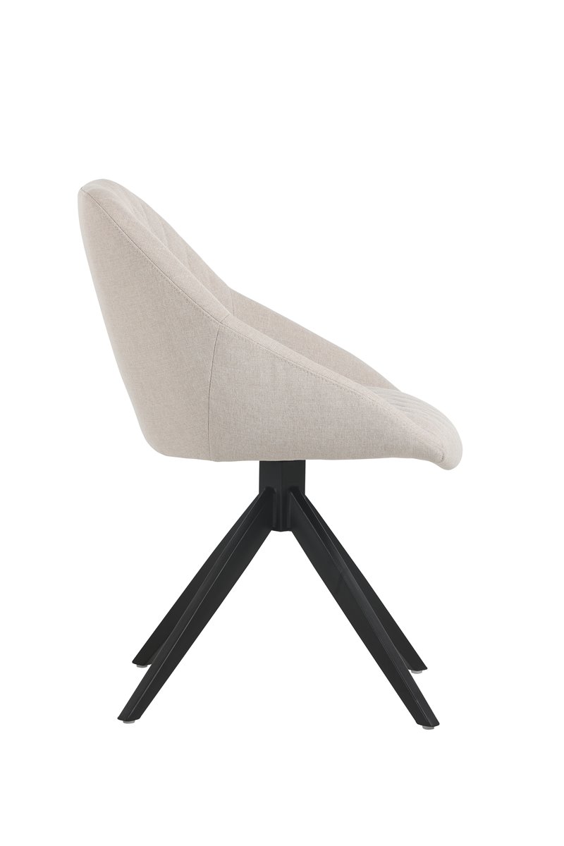 Transforma tu comedor con estilo y comodidad! La silla de comedor giratoria LLAVE es el complemento perfecto para tu hogar. Con su elegante tapizado en tela beige y sus patas de metal en negro, esta silla aportará un toque de sofisticación a tu espacio. Además, su diseño giratorio te permite una mayor movilidad y versatilidad a la hora de sentarte a disfrutar de tus comidas. Con unas medidas de 54,5 cm de ancho, 76 cm de alto y 57 cm de fondo, esta silla se adapta perfectamente a cualquier tipo de mesa.