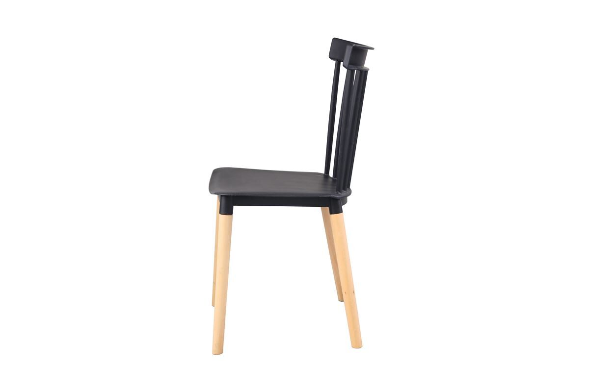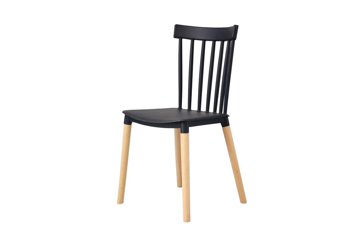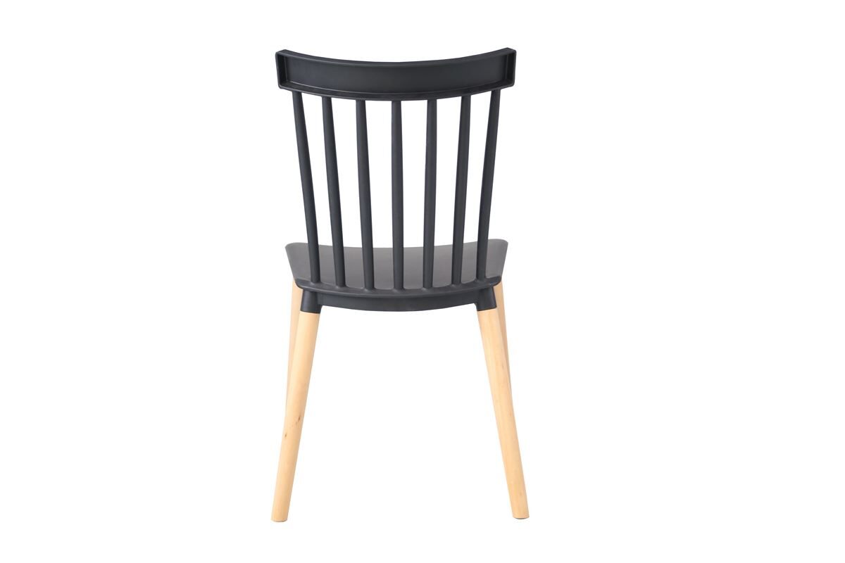 Silla fija . Asiento y respaldo de PP. Patas de madera de haya. Medidas: 43 an x 82 al x 43 fon cm.