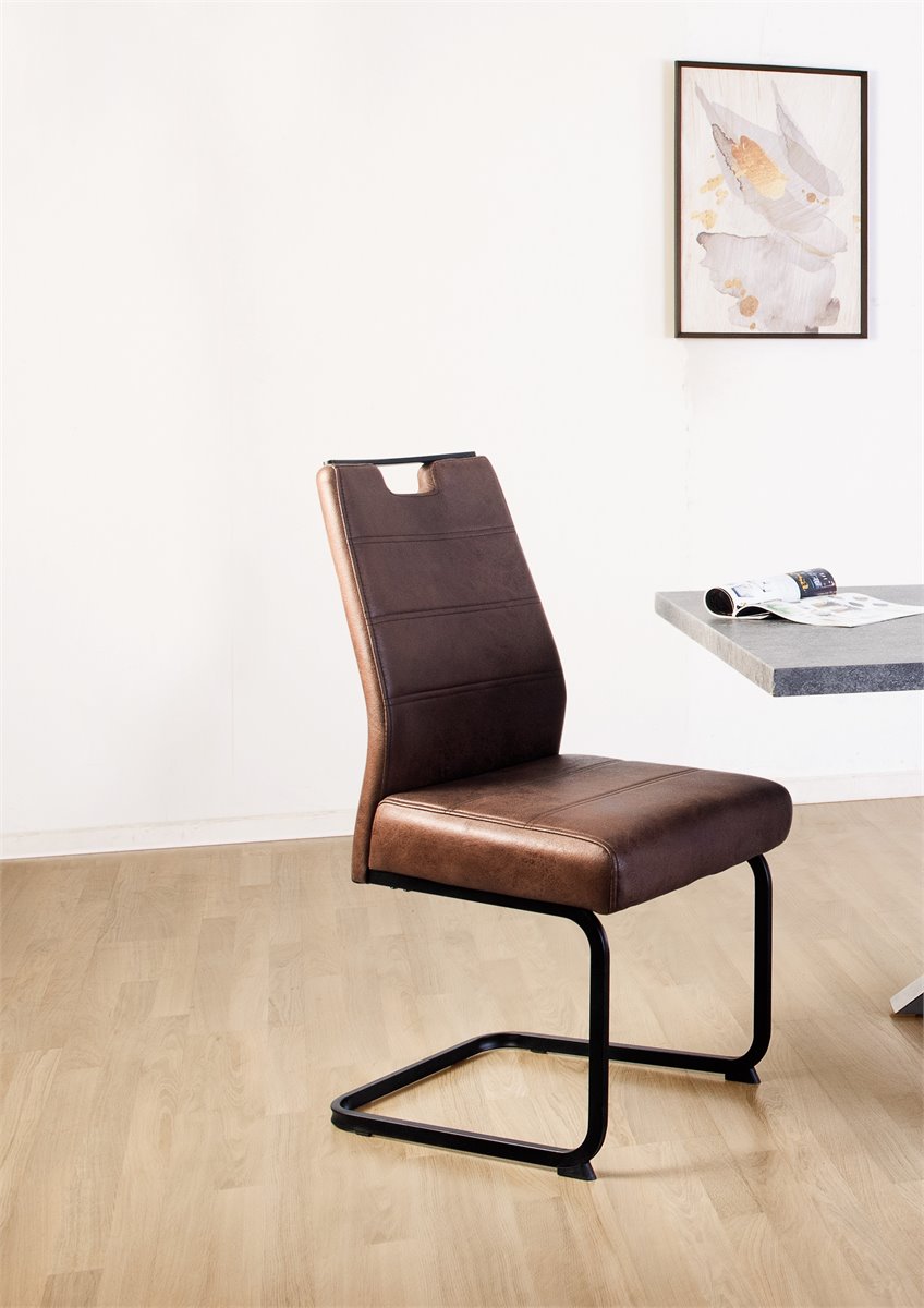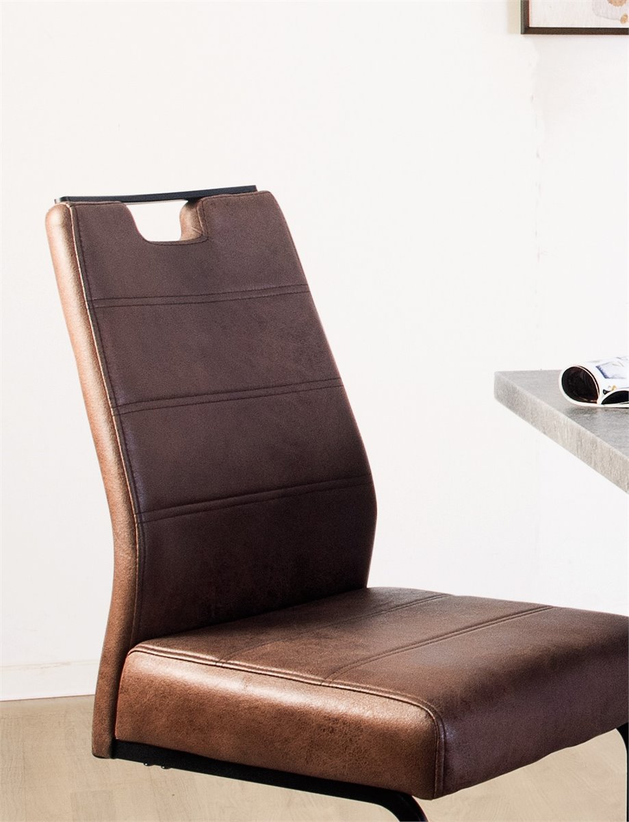La silla de comedor Kerstin es una pieza moderna con patas metálicas en forma de L que brinda comodidad y estilo. Con asientos de muelles ensacados para un asiento ergónomico, la silla de comedor con su amplio respaldo brinda apoyo a la espalda. Además, la tapicería de microfibra en color marrón no solo es fácil de limpiar, sino que también es resistente a las manchas e ideal para comedores modernos.