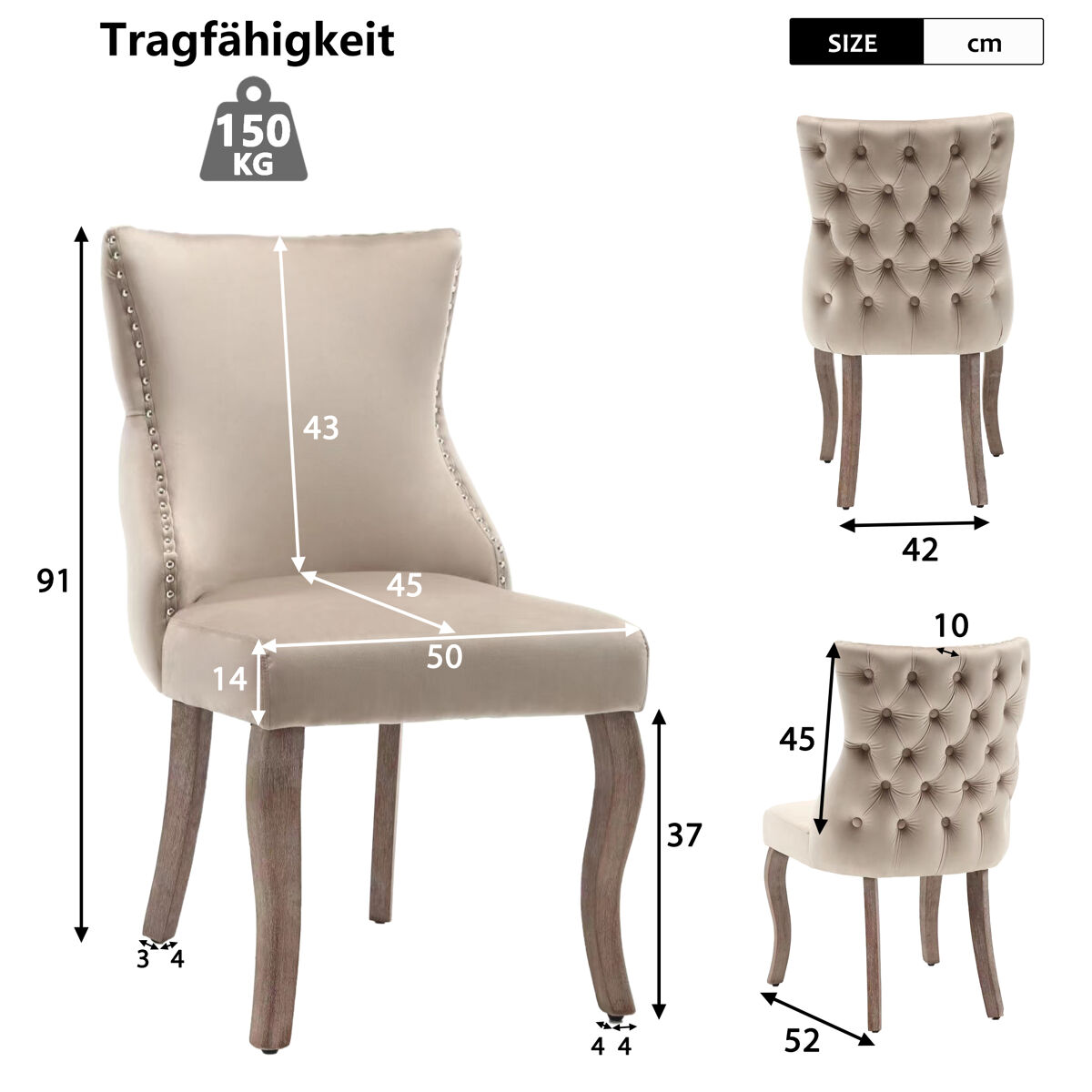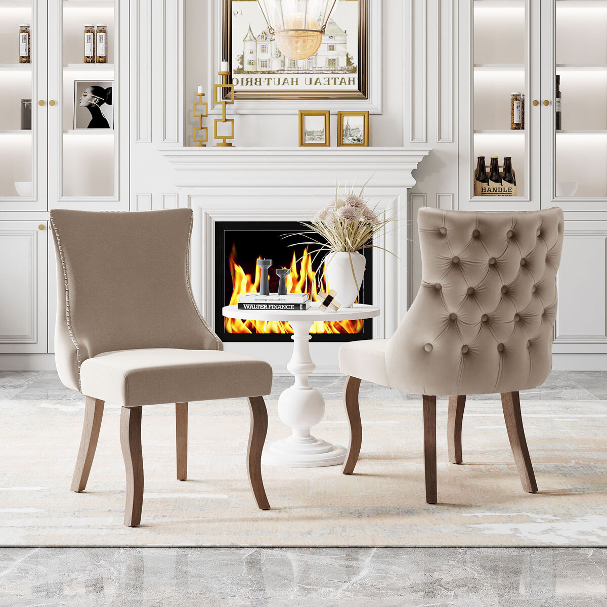 Hecho de terciopelo y tapicería suave, este juego de sillas tapizadas irradia lujo y estilo a la vez que proporciona asientos funcionales en el comedor, el dormitorio o la sala de estar.