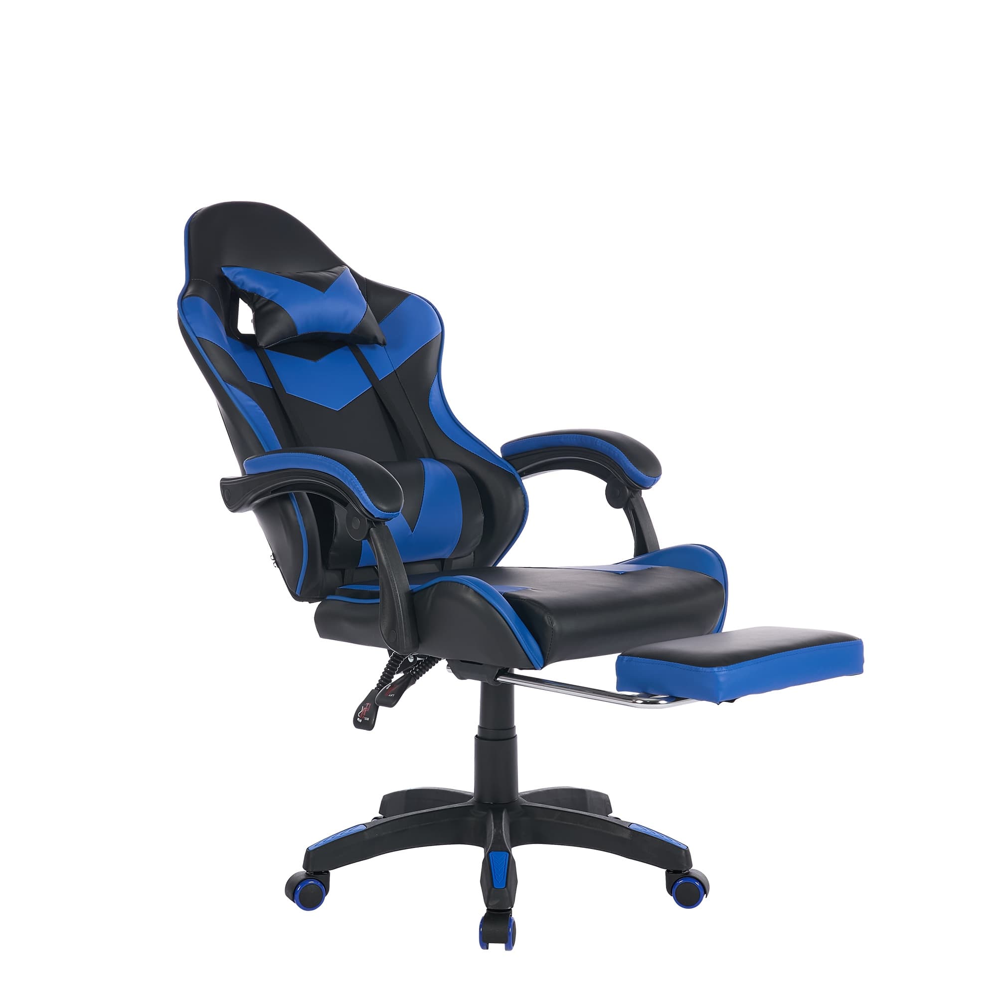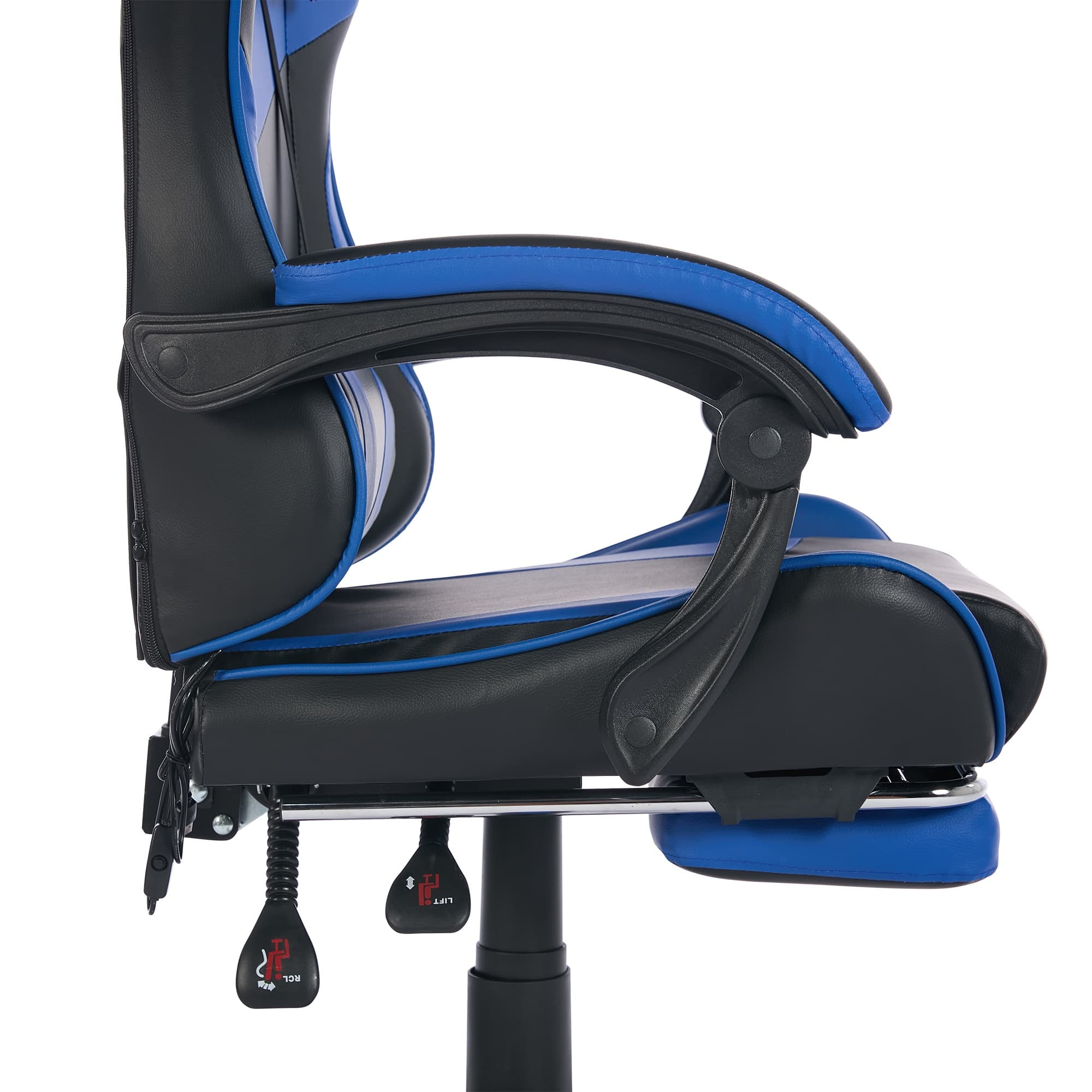 - Funciones: Giro 360°, inclinación 90°–155°, reposapiés retráctil, cojín lumbar y reposacabezas desmontable, masaje lumbar 2 puntos
