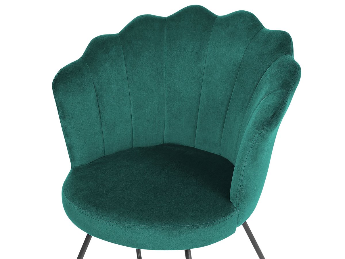 Sillón de diseño retro. Añade un toque retro a tu sala de estar con este sillón. Está fabricado a partir de tela de terciopelo resistente y suave al tacto. El asiento redondo y el respaldo en forma de concha atraen las miradas de los invitados. Combina bien en cualquier interior de estilo moderno o retro.