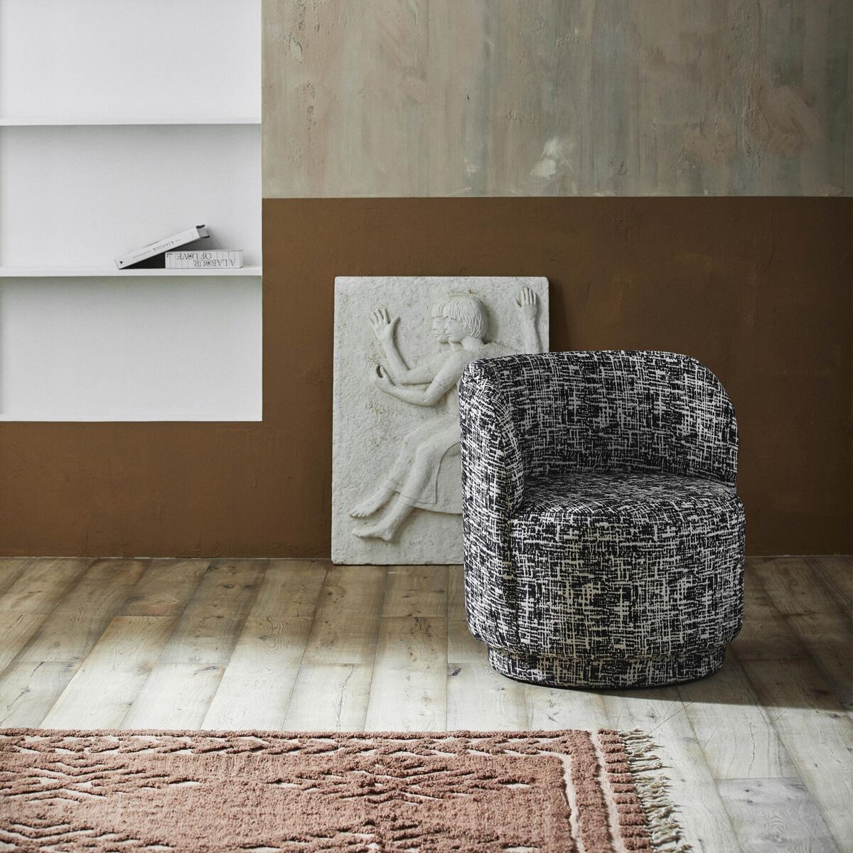 Sillón BOMU en una combinación de colores gráficos. El sillón BOMU presenta un llamativo patrón decorativo con un toque moderno y artístico, que le permite añadir su propio estilo personal a la decoración. BOMU cuenta con un lujoso acolchado que hace que sentarse en él resulte extraordinariamente cómodo. Aquí, la estética y la comodidad se han combinado a la perfección.