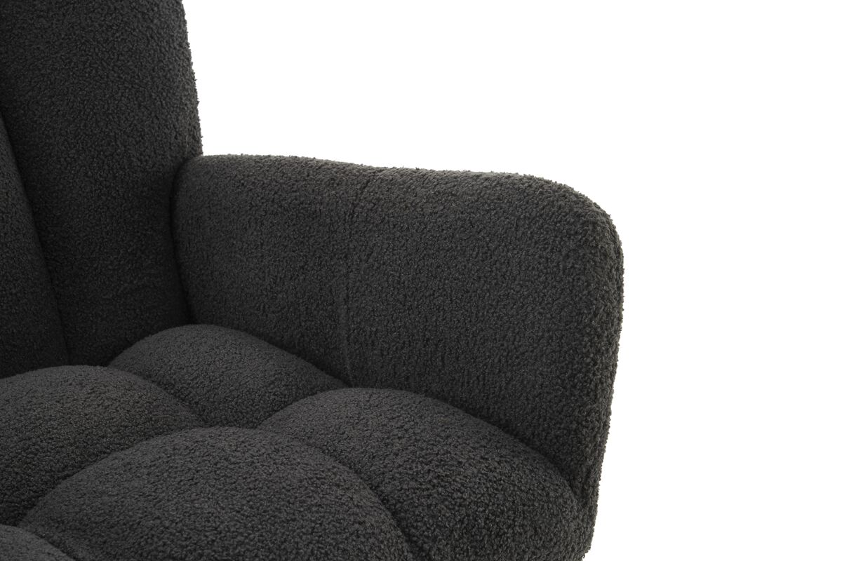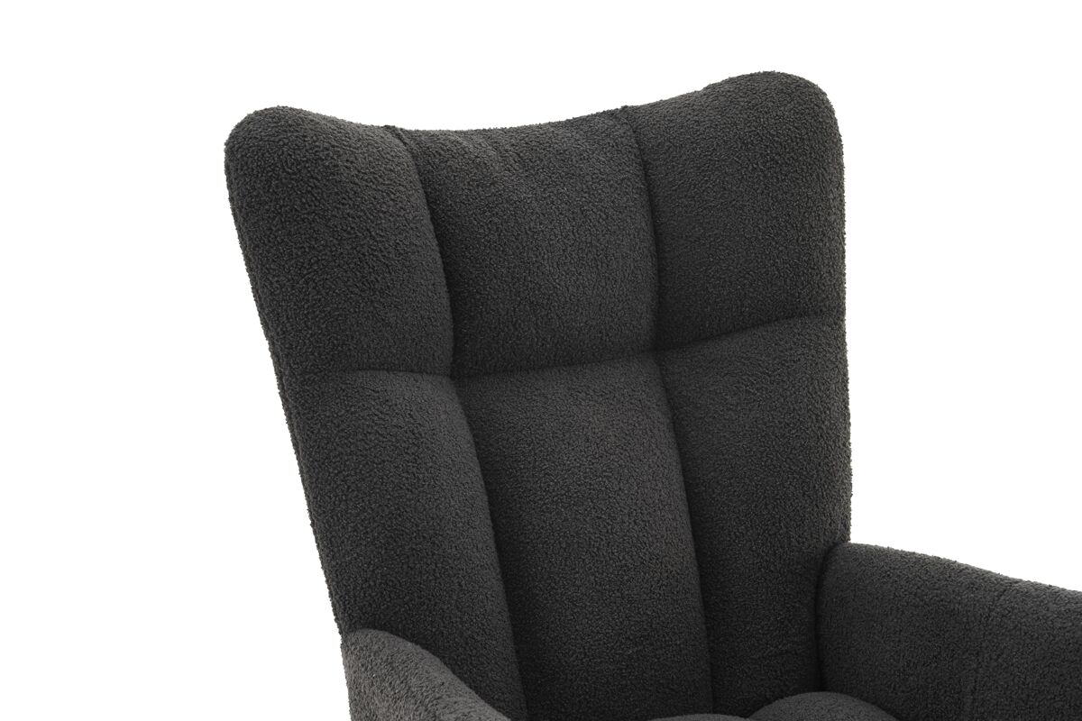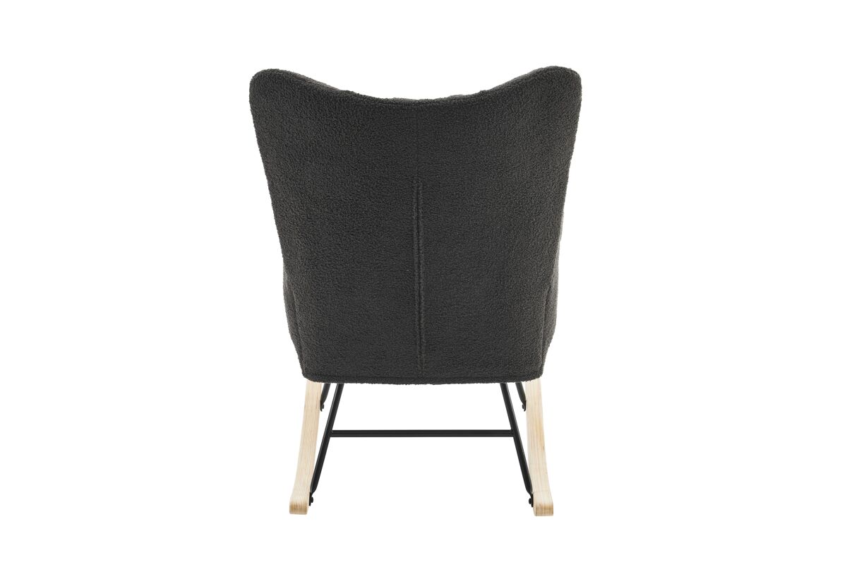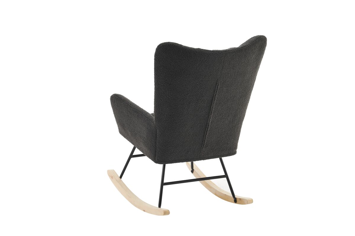 - Silla mecedora moderna con respaldo alto y reposabrazos, diseñada para ofrecer comodidad y soporte ergonómico.
