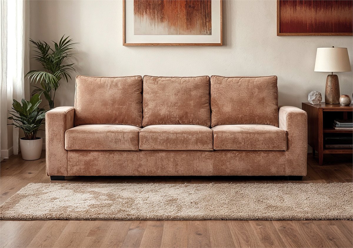 ¡Consigue el sofá de tus sueños con AZZURO! Este elegante sofá de 3 plazas en color terracota no solo brinda estilo a tu hogar, sino que también se transforma en una cómoda cama de 191 x 137 cm. Con su resistente estructura de madera y tapizado en tela de alta calidad, AZZURO es la opción perfecta para maximizar el espacio en tu sala de estar. ¡Hazte con el tuyo hoy y descubre la comodidad y funcionalidad que AZZURO tiene para ofrecer!