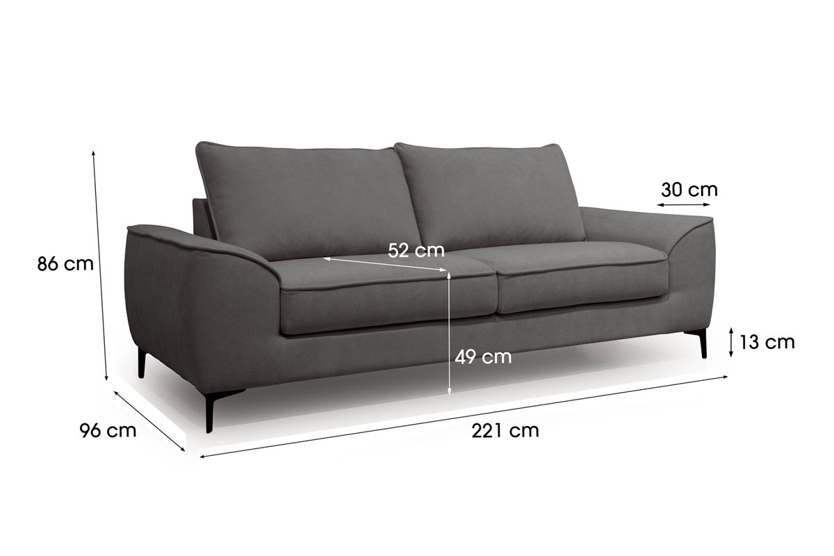 ¡Consigue el sofá de tus sueños con BOSCO! Con su elegante diseño en color gris oscuro, estructura de madera y tapizado en tela de alta calidad, este sofá de 3 plazas es el complemento perfecto para tu hogar. Disfruta de la comodidad suprema gracias a su apertura estilo italiano y patas metálicas en color negro. Con medidas de 221 cm de ancho, 86 cm de alto y 96 cm de fondo, el sofá BOSCO es la elección ideal para tu sala de estar. ¡Hazte con él y transforma tu espacio con estilo y confort incomparables!