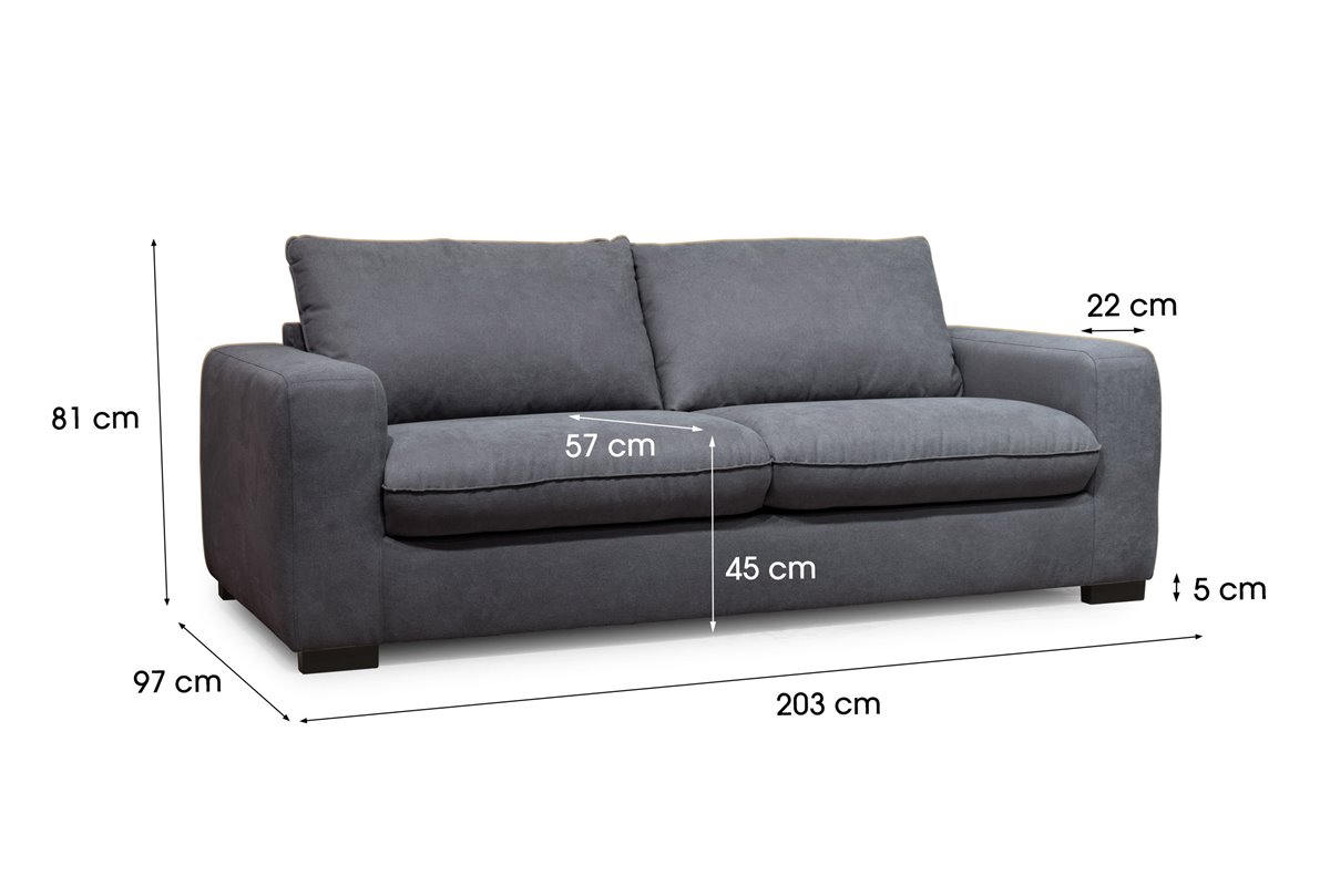 ¡Decora tu hogar con estilo y comodidad con el sofá SWEET de color gris oscuro Con su estructura de madera resistente y tapizado en tela de alta calidad, este sofá fijo de 3 plazas es la pieza perfecta para tu sala de estar. Con medidas de 203 cm de ancho, 81 cm de alto y 97 cm de fondo, ¡te brindará el espacio ideal para relajarte con elegancia! ¡Aprovecha ahora para transformar tu espacio y disfrutar del confort que mereces!