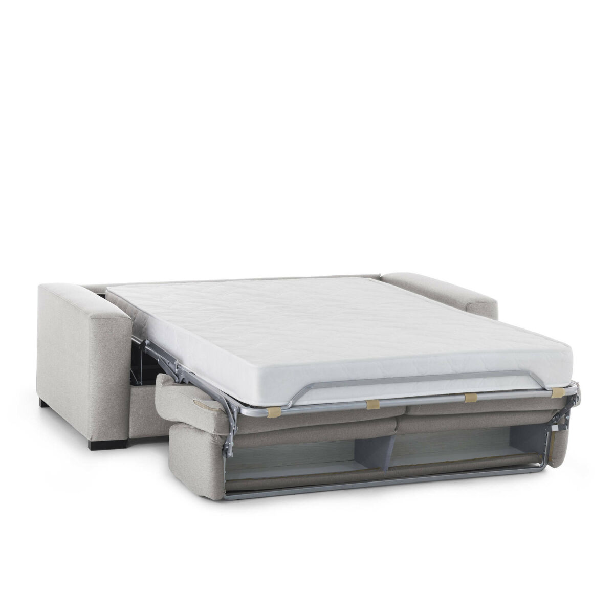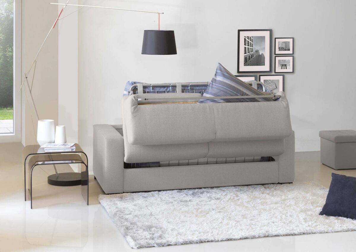 RESISTÊNCIA E CONFORTO - A estrutura em ferro do produto garante durabilidade, estabilidade e resistência ao longo do tempo - Este SOFÁ inclui base de ripas eletrossoldadas, colchão de poliuretano expandido indeformável e apoios de braços acolchoados finos de 10 cm - O forro é em tecido macio e poliéster delicado, totalmente removível e lavável na máquina até 30 graus, na cor cinza pomba - O tecido acolchoado garante maciez ao toque e serenidade durante o sono - Com um simples movimento este sofá se transforma em uma prática cama - O compartimento Recipiente de almofadas é inserido no encosto, permitirá guardar facilmente as almofadas não utilizadas.
