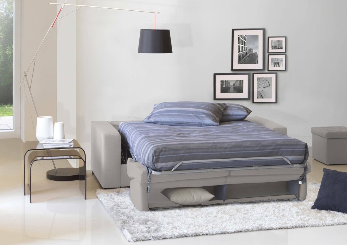 RESISTÊNCIA E CONFORTO - A estrutura em ferro do produto garante durabilidade, estabilidade e resistência ao longo do tempo - Este SOFÁ inclui base de ripas eletrossoldadas, colchão de poliuretano expandido indeformável e apoios de braços acolchoados finos de 10 cm - O forro é em tecido macio e delicado poliéster cinza, totalmente removível e lavável na máquina até 30 graus - O tecido acolchoado garante maciez ao toque e serenidade durante o sono - Com um simples movimento este sofá se transforma em uma prática cama - O compartimento do travesseiro é inserido na parte de trás permitirá você pode armazenar facilmente almofadas não utilizadas.