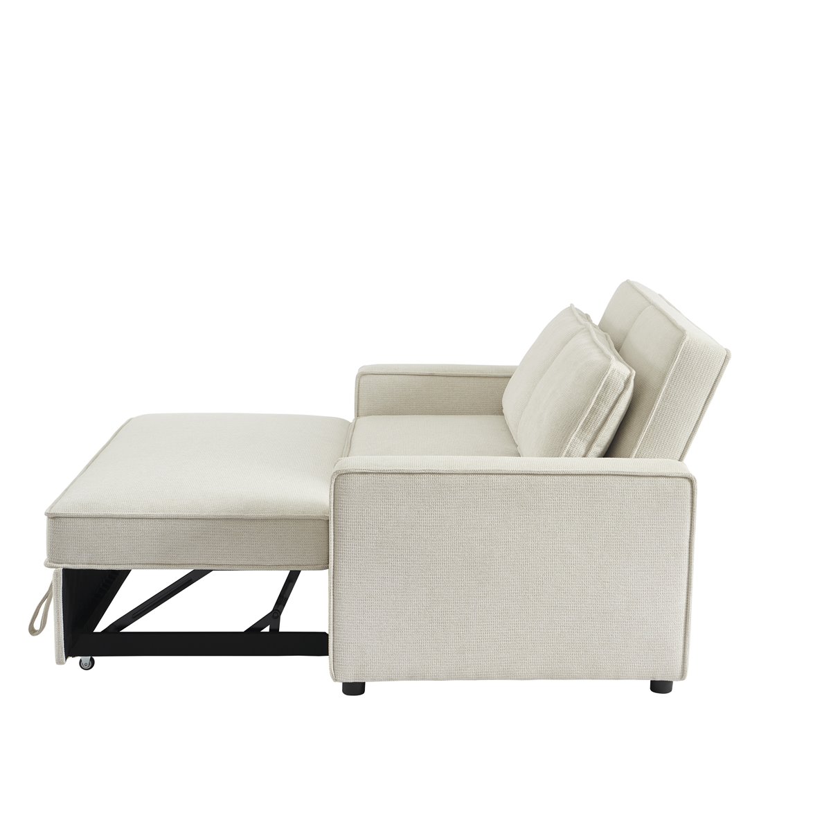 Descubre la versatilidad y elegancia del sofá cama Lola de tres plazas en un sofisticado color beige. Diseñado para adaptarse a tus necesidades, este sofá cama combina funcionalidad con estilo, convirtiéndose en la pieza central perfecta para cualquier sala de estar. Su sólida estructura de madera maciza contrachapada de eucalipto garantiza durabilidad y resistencia, mientras que su suave tapizado en tela ofrece comodidad sin igual. Con dimensiones ideales de 172 cm de ancho, 94 cm de alto y 91 cm de fondo, el sofá Lola se transforma fácilmente en una cómoda cama de 141 x 190 cm, proporcionando un espacio acogedor para tus invitados o una solución práctica para espacios reducidos. No comprometas el diseño por funcionalidad: elige Lola y disfruta del equilibrio perfecto entre estética y confort. ¡Hazte con el tuyo hoy mismo y transforma tu hogar!