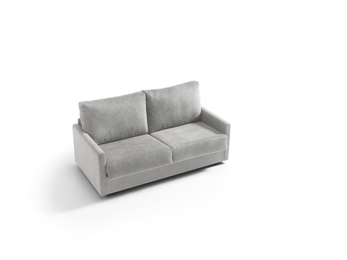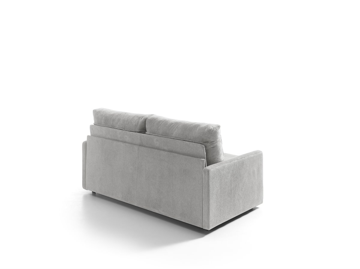 Estructura en madera maciza y tablero de partículas. Bastidor de madera y nea. Relleno de asientos goma de 27 kg. Relleno de respaldo con fibra hueca 100%. Patas PVC wengue. Almohadas desenfundables. Cama sistema apertura italiana. Colchón de 140 cms y chaislonge REVERSIBLE