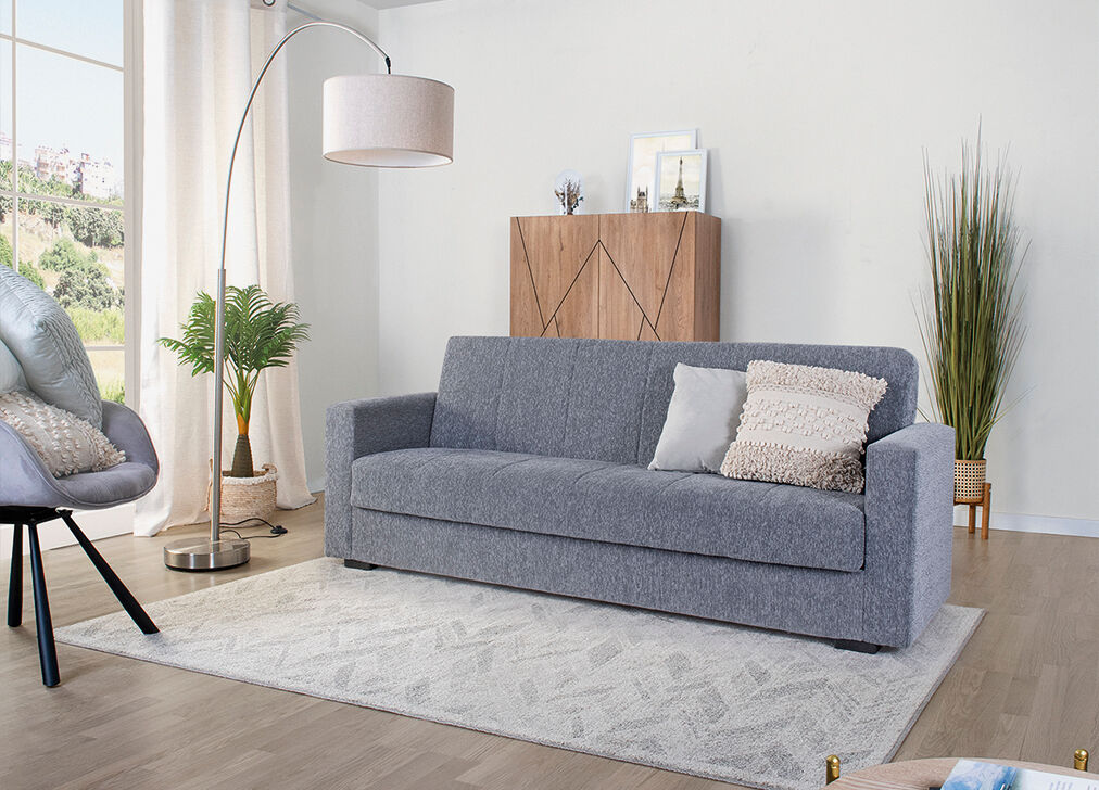 ¿Conoces esa molesta sensación de empezar a quedarte dormido en el sofá y tener que ir hasta la cama? El camino hasta el dormitorio puede hacerse muy, muy largo. Gracias al sofá cama NORA podrás dormir a pierna suelta en el mismo salón, si es lo que te apetece. Y es que, además de ser un comodísimo sofá tapizado en tela en el que sentarte y disfrutar de su confortable acogida, también puedes convertirlo rápidamente en una práctica cama de 181x103 cm. Cuenta además con un espacio de almacenaje en el que podrás guardar, por ejemplo, mantas o sábanas, para que estés siempre preparado ante cualquier imprevisto. Especialmente útil también si cuentas con invitados en casa, este sofá cama NORA hará las veces de cama y de sofá según lo que necesites en cada situación, siendo siempre igual de cómodo.