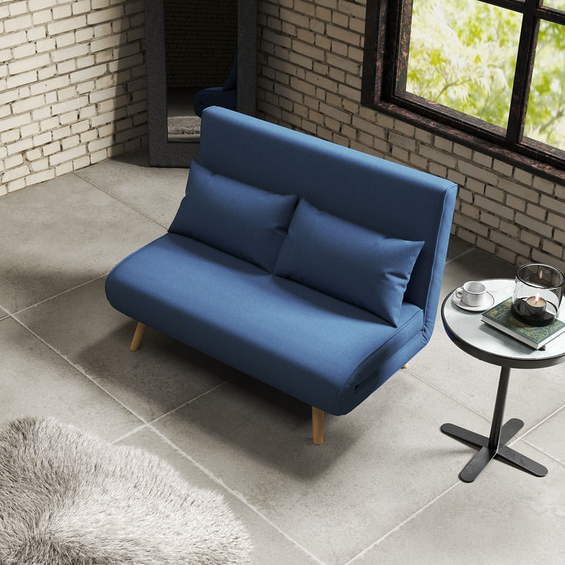 - Este sofá cama tapizado en tejido tipo lino transpirable, agradable al tacto y fácil de integrar en cualquier ambiente
