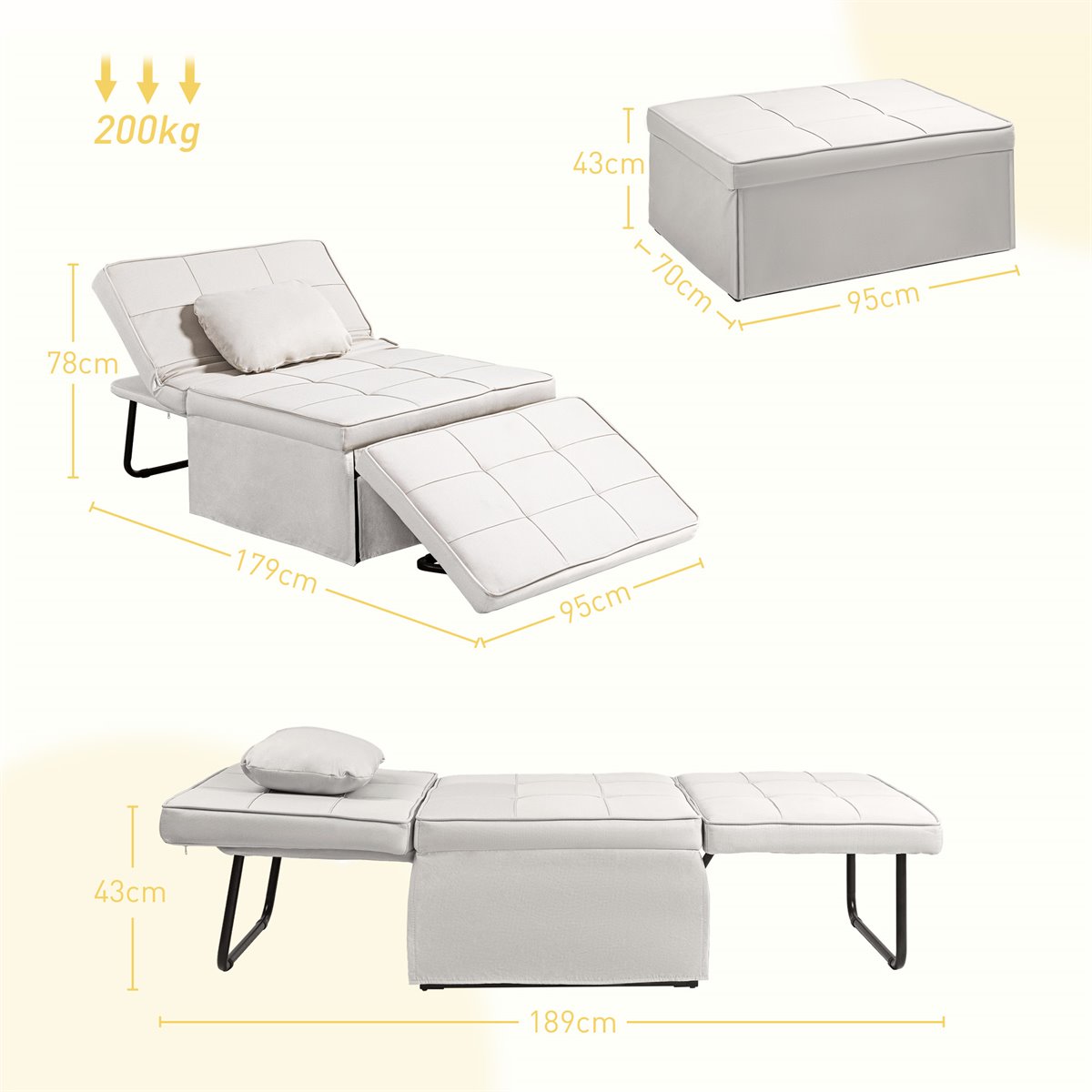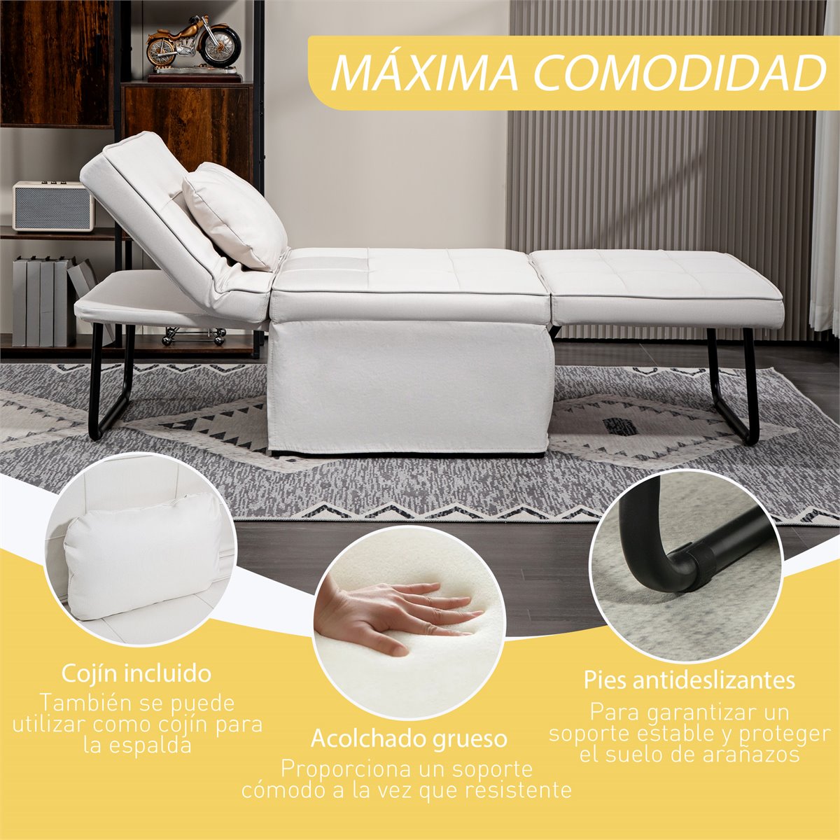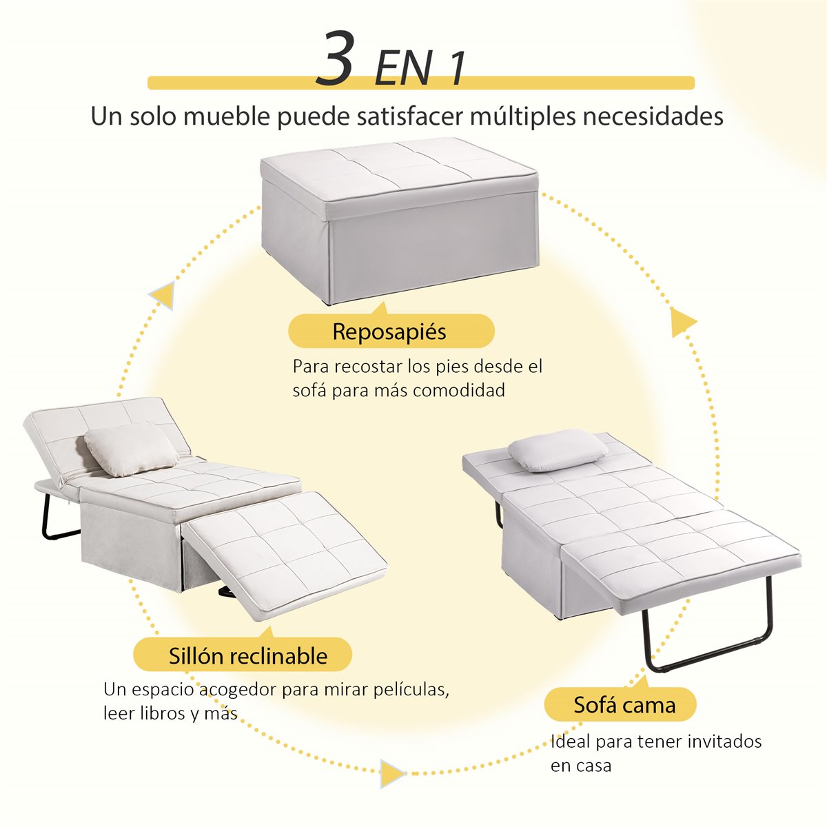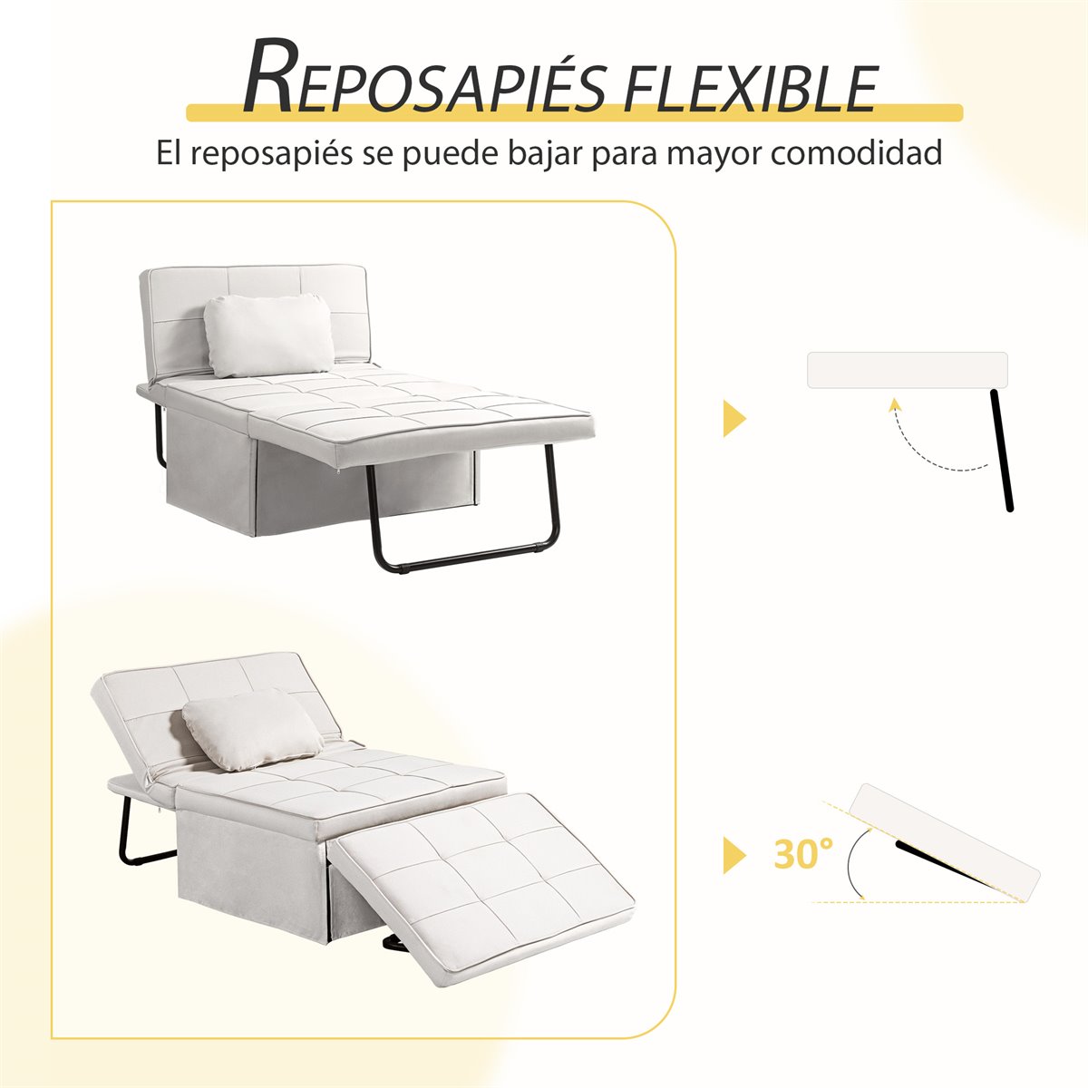- Sofá 4 en 1, se convierte en cama individual y en un práctico apoyapiés
