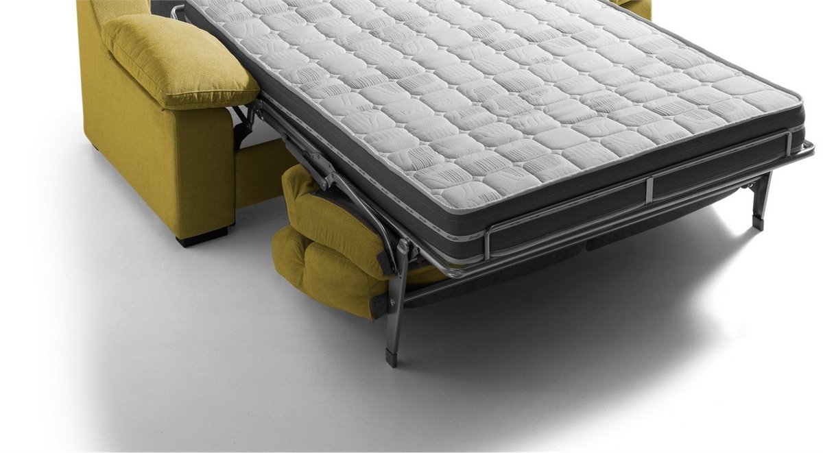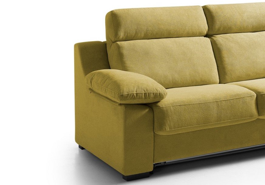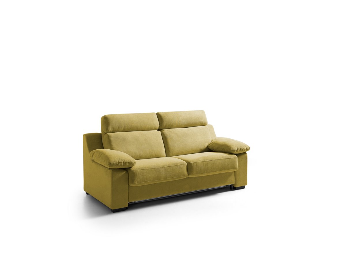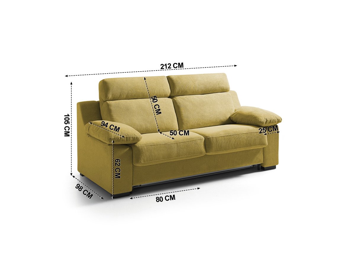 EHazte ya con el Sofá cama MOLLY 3 plazas color Mostaza, que cuenta con un revestimiento en tela, y puede convertirse en cama con medidas 212an. x 105al. 98fon cm. Es de madera maciza y tablero de partículas. Además, posee una suspensión cuyo bastidor es de madera y nea lo que te permitirá mayor comodidad. Asimismo, los asientos cuenta con una espuma de 28Kg/m3, y sus patas son en PVC color wengué.
