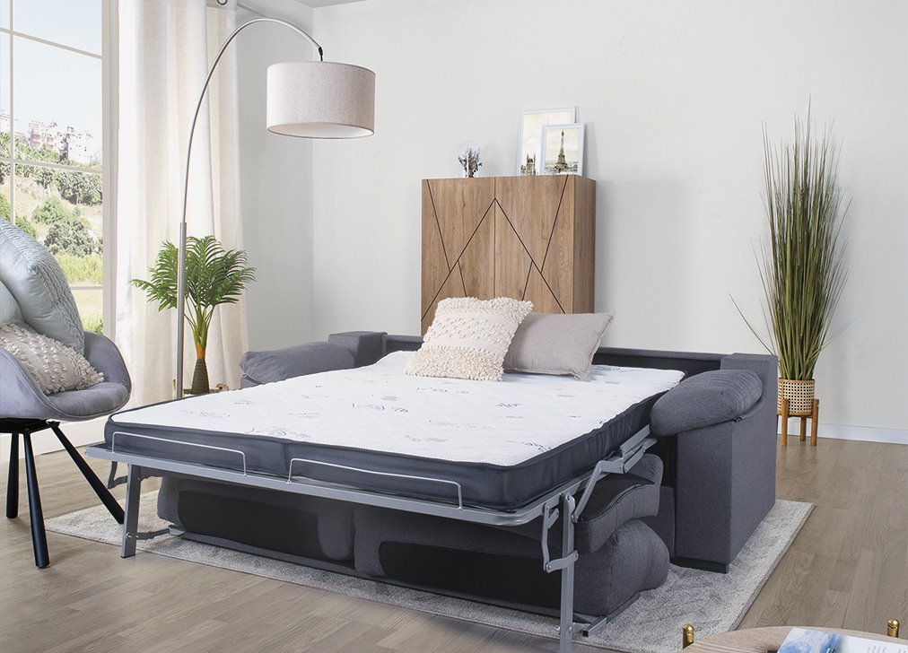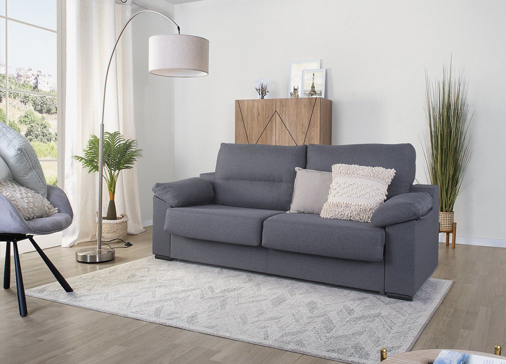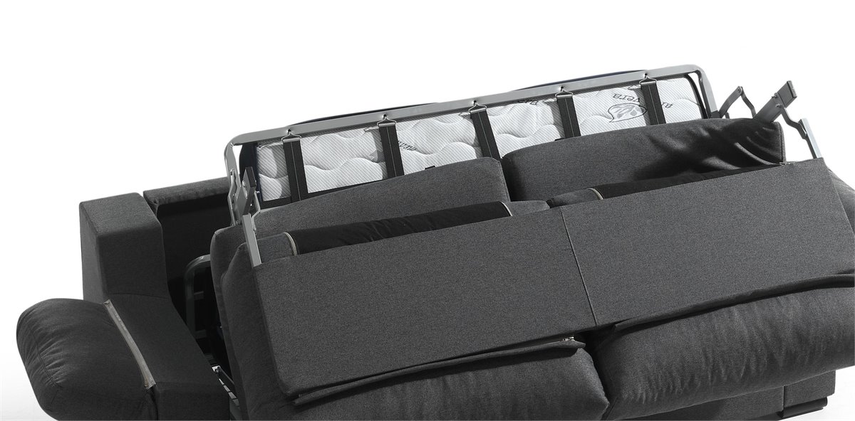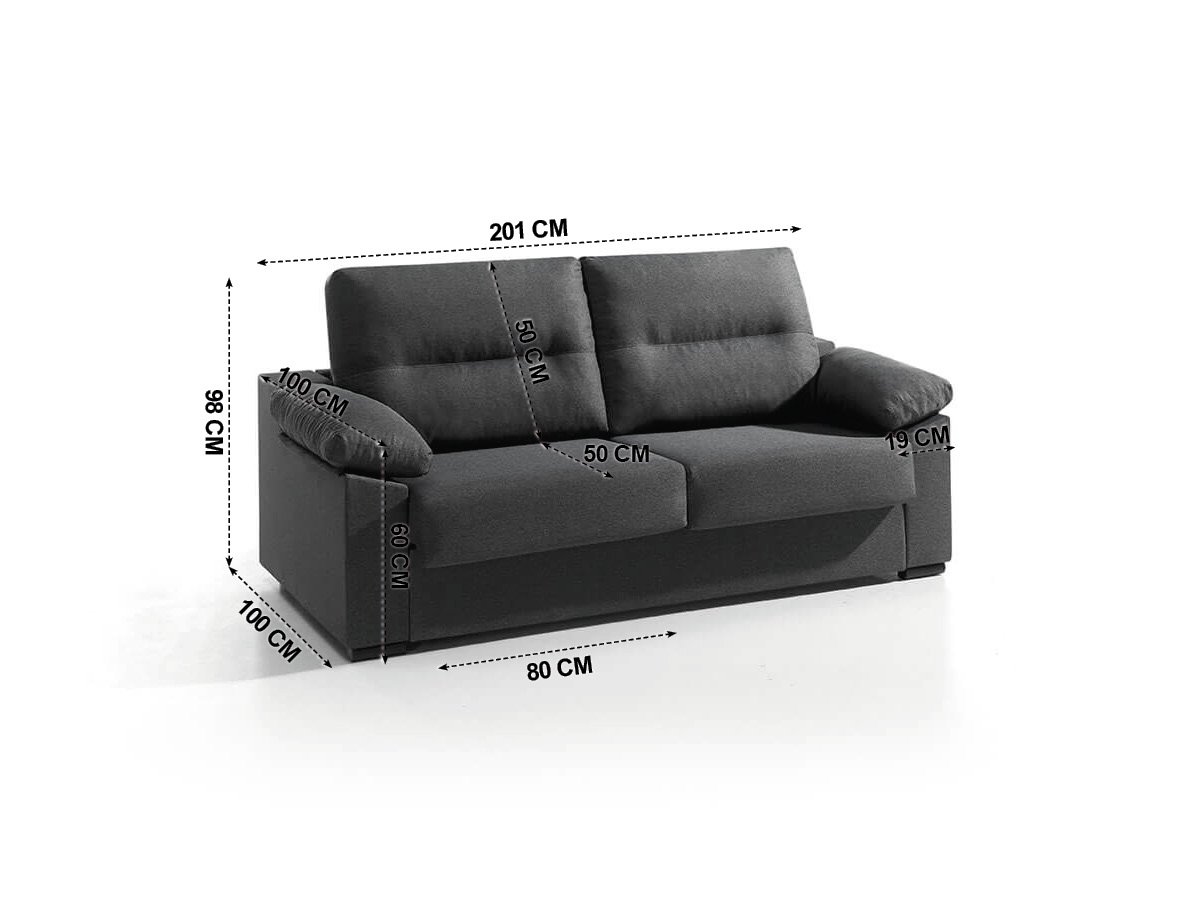 Estas buscando un sofá amplio, cómodo e ideal para tu salón? En Conforama te ofrecemos el sofá cama Nelly. Te apasionará. El sofá NELLY se convierte en cama, es de 3 plazas y revestido en tela con un sistema de apertura Italiana. Estructura en madera maciza y tablero de partículas. Bastidor de madera y nea. Relleno de asientos goma de 28 kg. Relleno de respaldo y brazo con fibra hueca 100%. Patas PVC wengue. Almohadas desenfundables. Cama sistema apertura italiana. Colchón de 14 cm