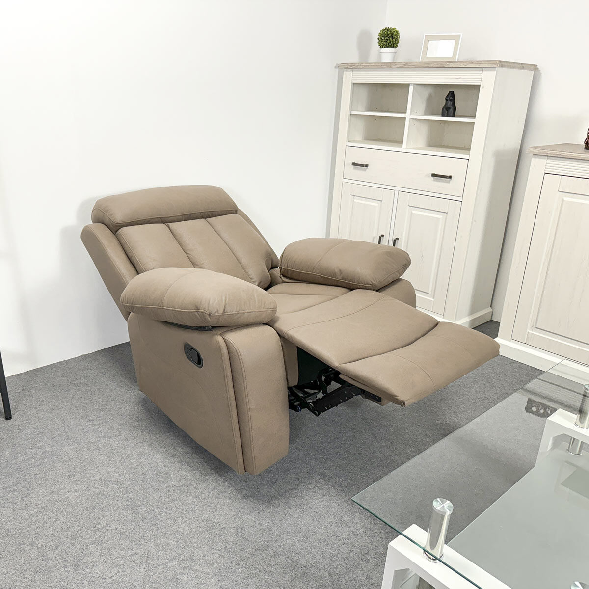 Transforma tu hogar con nuestro sofá relax, un equilibrio perfecto entre modernidad, elegancia y confort que elevará el estilo de cualquier espacio. Dimensiones: 104 cm (Ancho) x 103,5 cm (Alto) x 93 cm (Fondo). Con un simple gesto, este sofá se reclina, tanto en la parte de la espalda como en la de los pies, proporcionando un espacio acogedor y práctico para ti y para tus invitados. Fabricado con materiales de alta calidad y una construcción robusta, el sofá relax Havana está diseñado para perdurar a lo largo del tiempo, resistiendo el desgaste diario y manteniendo su comodidad y estilo inalterados. El sofá relax Havana se distingue por ofrecer comodidad y estilo en un solo mueble, siendo ideal para ver la televisión, leer, o simplemente relajarse. Fabricado en España siguiendo los más altos estándares de calidad. Además, su fácil montaje te permite disfrutarlo rápidamente en tu hogar