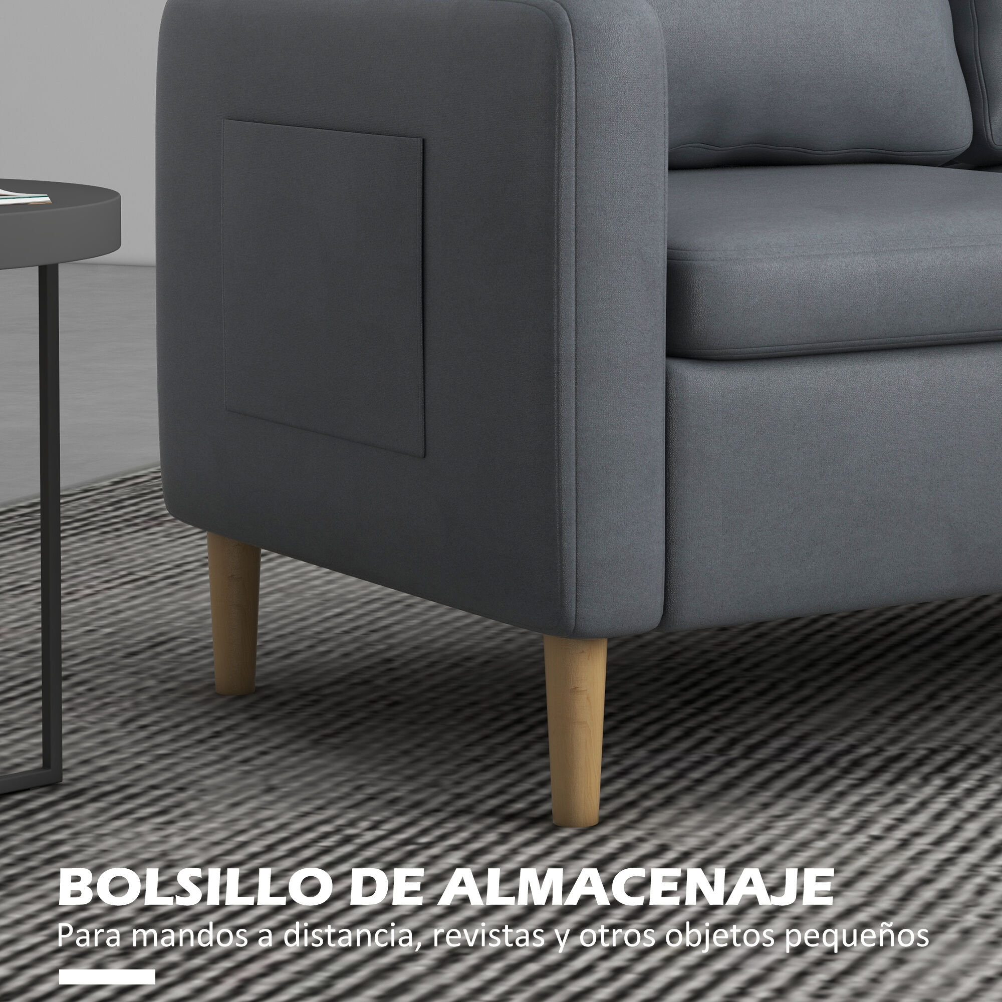 - Sofá con bolsillos, uno a cada lado para mayor comodidad