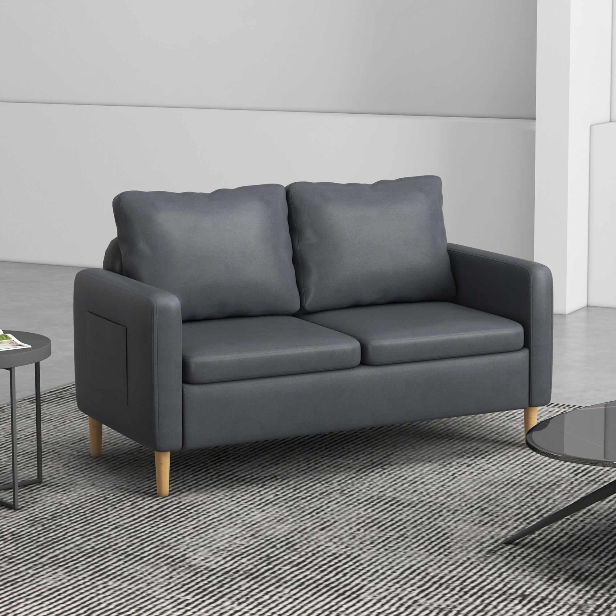 ¿Buscas un sofá compacto y cómodo? Este sofá de 2 plazas de HOMCOM es ideal. La suave tapicería de microfibra, junto con el acolchado de alta densidad, ofrece un espacio confortable perfecto para una noche de cine, relajarse después del trabajo o acurrucarse mientras lee un libro. Además, la combinación del color gris y las patas de madera aportarán un toque de elegancia allí donde lo coloques.