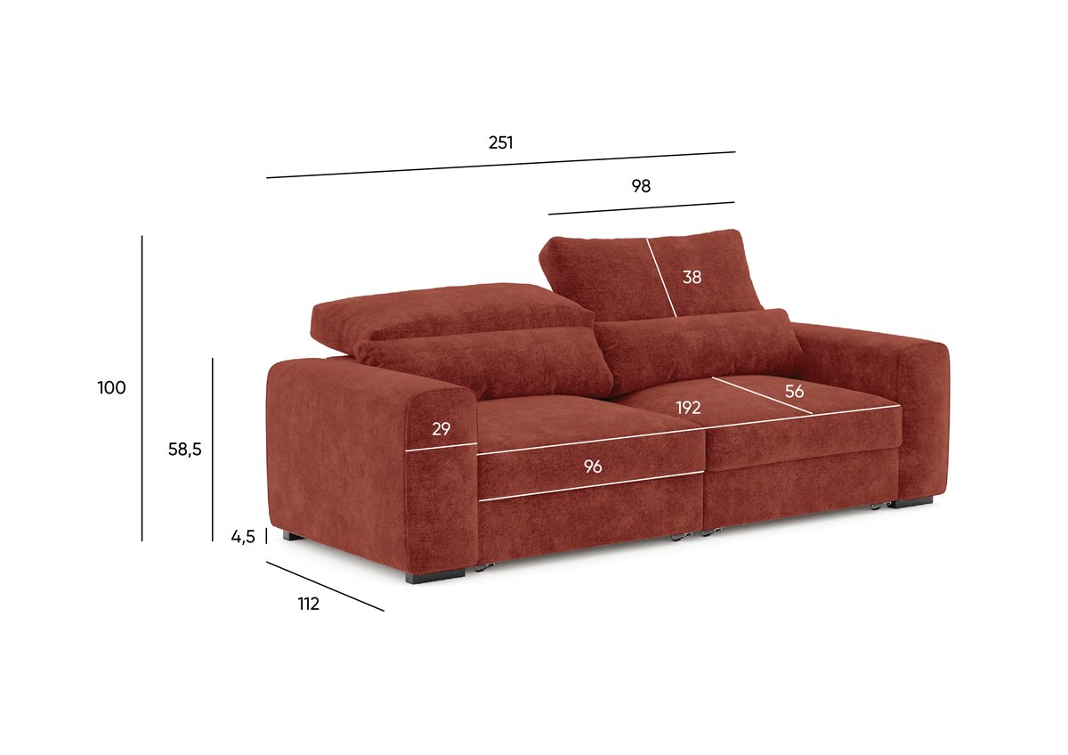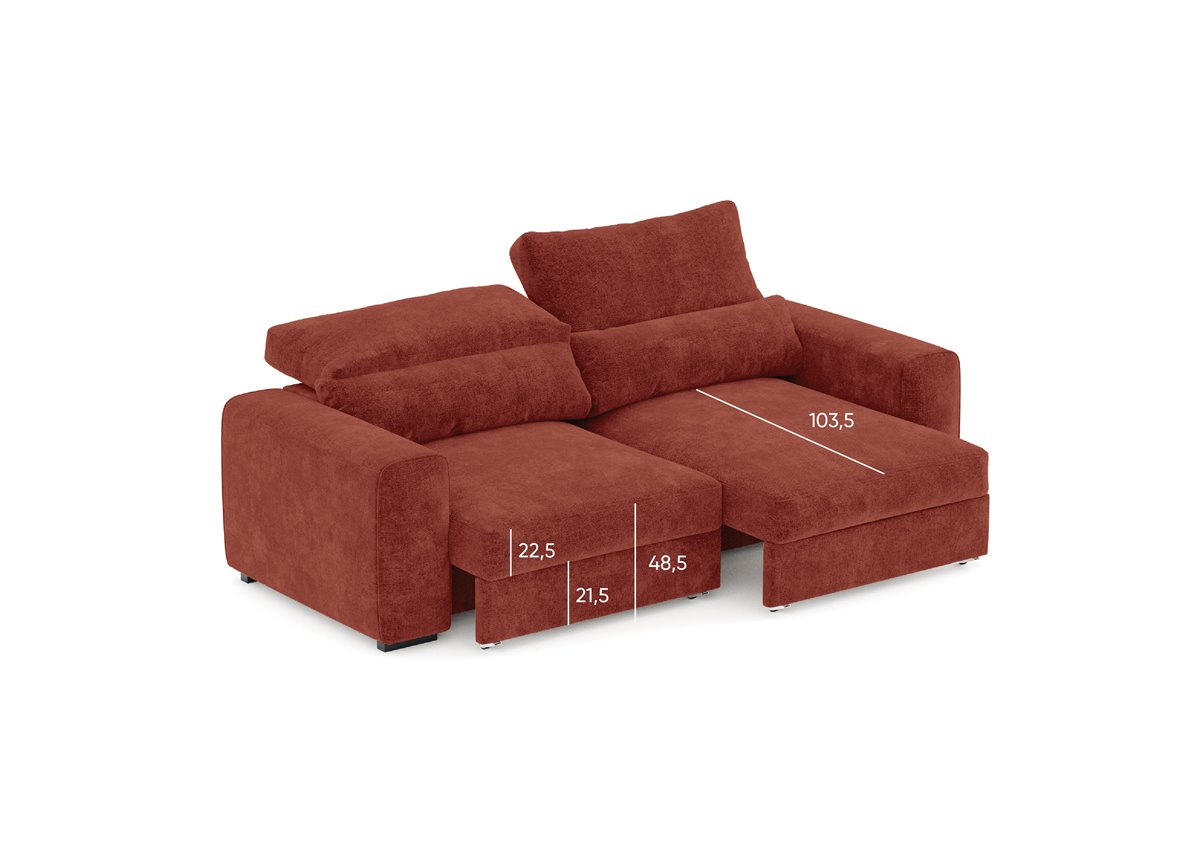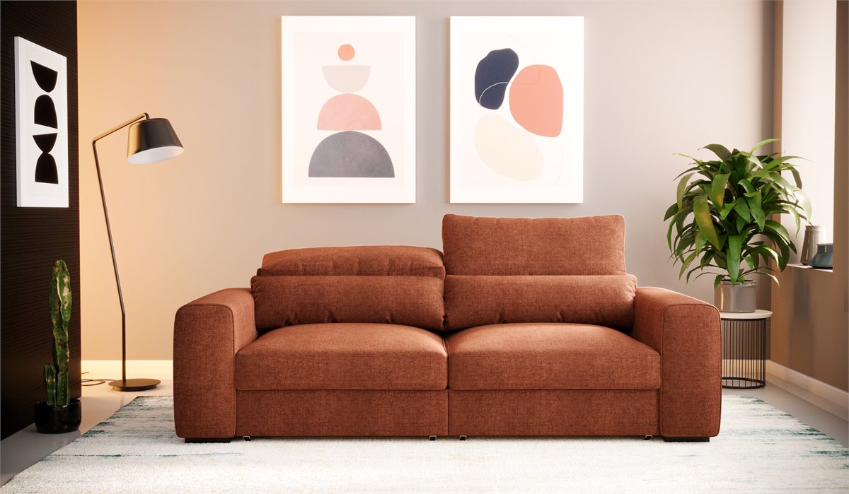 El sofá Landon de 3 plazas se convertirá en tu aliado del descanso. Se trata de un mueble de diseño elegante y funcional, cuya estructura de madera aporta resistencia y firmeza durante tus horas de descanso. Con una fácil conversión de sofá a cama tendrás un espacio adicional para tus invitados.Esta diseñado con un suave tejido en color terracota que aporta la calidez y viveza que necesita tu hogar.