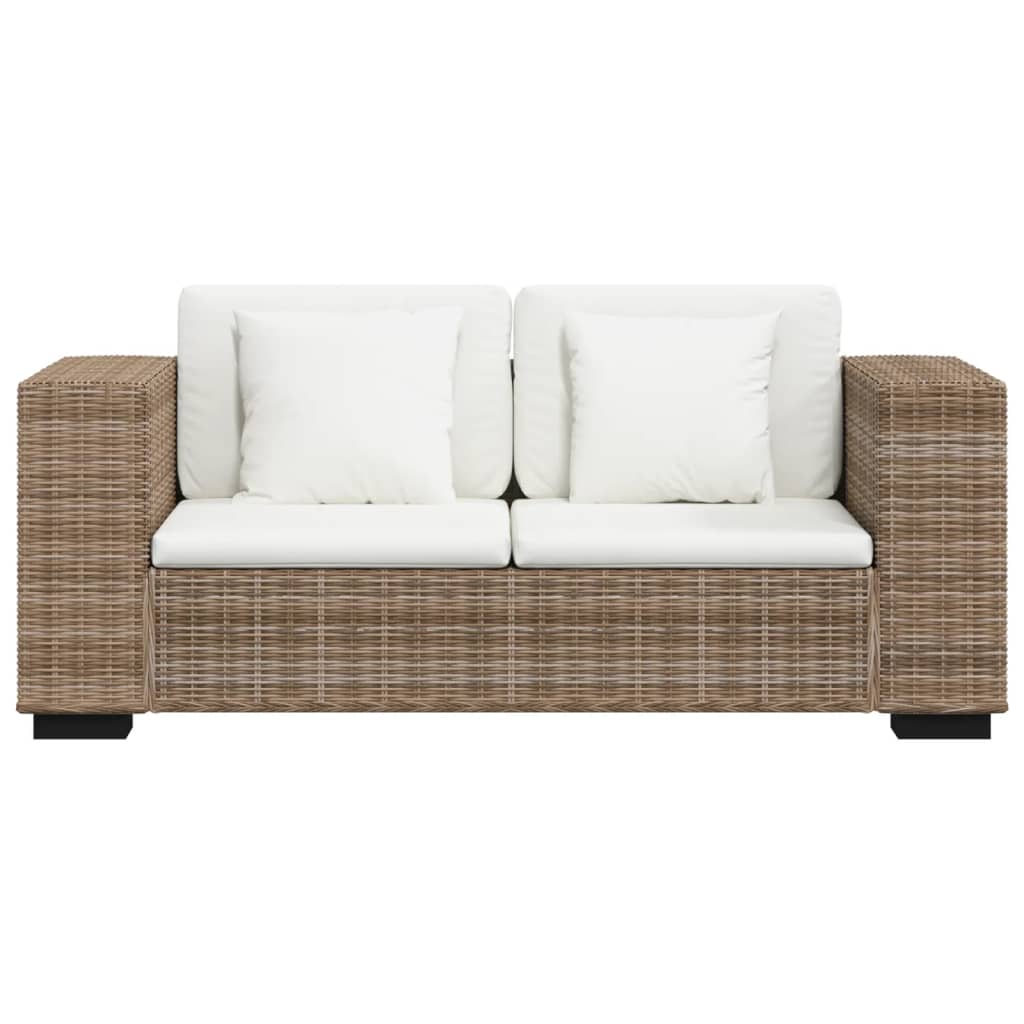 Gracias al genuino material de ratán kubu, el sofá es fácil de limpiar, resistente y adecuado para el uso diario. Cuenta con una resistente estructura de madera, que es muy duradera y estable. Los gruesos cojines del asiento y del respaldo son cómodos y también lavables gracias a sus fundas extraíbles. Además, los reposabrazos anchos incrementan la comodidad de asiento.