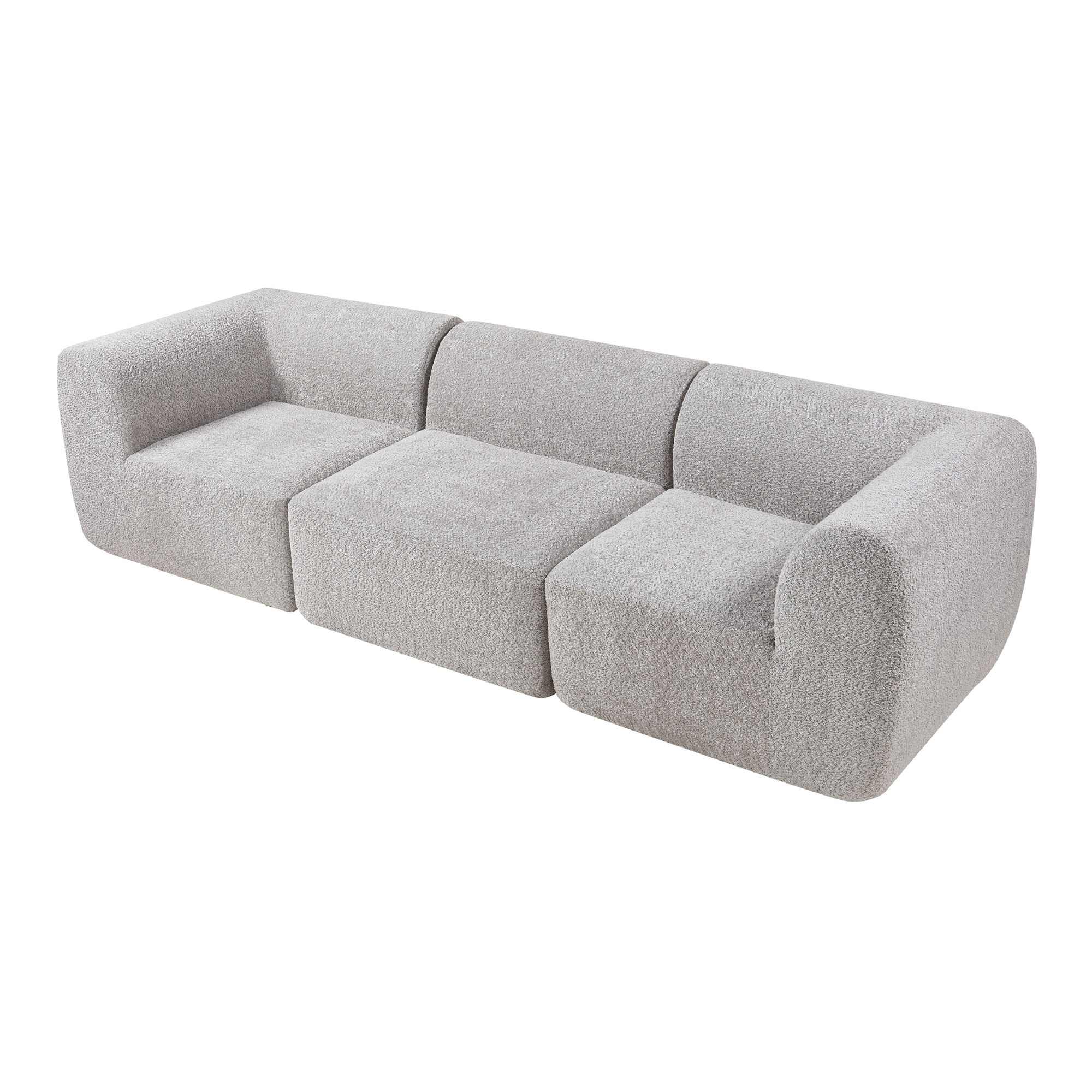 Su suave funda bouclé, resistente y fácil de limpiar, añade un toque sofisticado. Perfecto para relajarte a solas o compartir momentos con amigos, este sofá será tu rincón favorito del hogar.