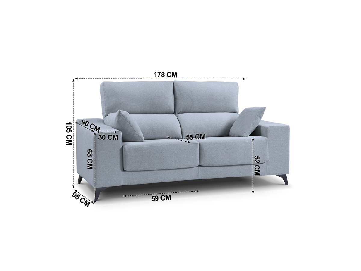 ¡Presentamos el sofá NOELIA de 2 plazas en un elegante color azul claro! Diseñado con una estructura resistente de madera de pino y aglomerado, este sofá combina comodidad y durabilidad en uno. Los asientos están rellenos de suave gomaespuma para brindarle la máxima comodidad mientras se relaja en casa. Además, cuenta con suspensión tipo Cincha NEA para un soporte adicional y respaldos de fibra hueca que se adaptan perfectamente a la forma de su espalda. Con sus medidas ideales de 178 cm de ancho, 105 cm de alto y 95 cm de fondo, el sofá NOELIA se adapta fácilmente a cualquier espacio sin comprometer el estilo o la comodidad. Su elegante diseño y la calidad de sus materiales hacen que sea una opción perfecta para complementar cualquier decoración. No espere más para disfrutar del confort y estilo que ofrece el sofá NOELIA. ¡Aproveche esta oportunidad para crear un ambiente acogedor en su hogar!