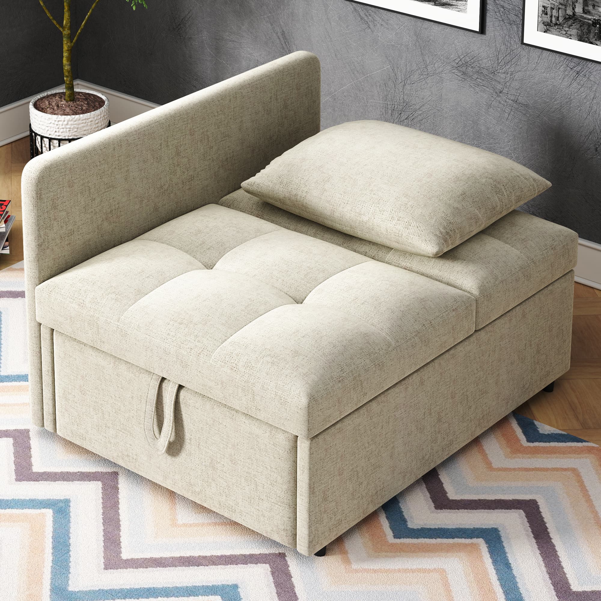 Este sofá cama 3 en 1 multifuncional es una solución perfecta para hogares con espacio limitado. Su diseño convertible le permite transformar fácilmente de sofá a silla de descanso y cama, proporcionando máxima comodidad y funcionalidad para pequeñas habitaciones, oficinas o habitaciones de invitados. Además, su estructura robusta, junto con un elegante tejido de lino, garantiza durabilidad y confort en cada uso.